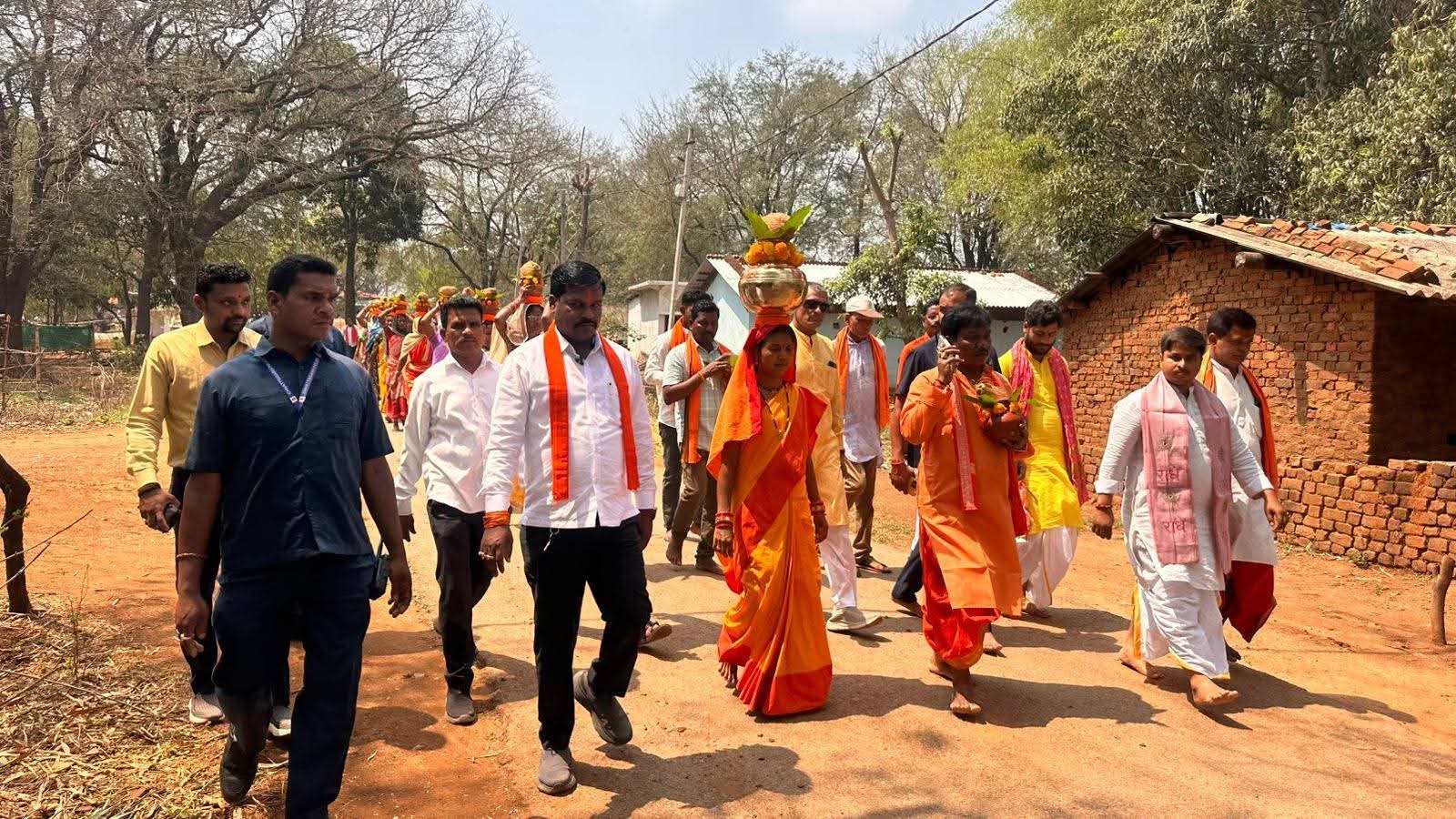 सांसद महेश कश्यप के पैतृक ग्राम कुम्हरावंड में श्री हनुमान प्राण प्रतिष्ठा समारोह में हुआ प्रतिमा अधिवास अनुष्ठान