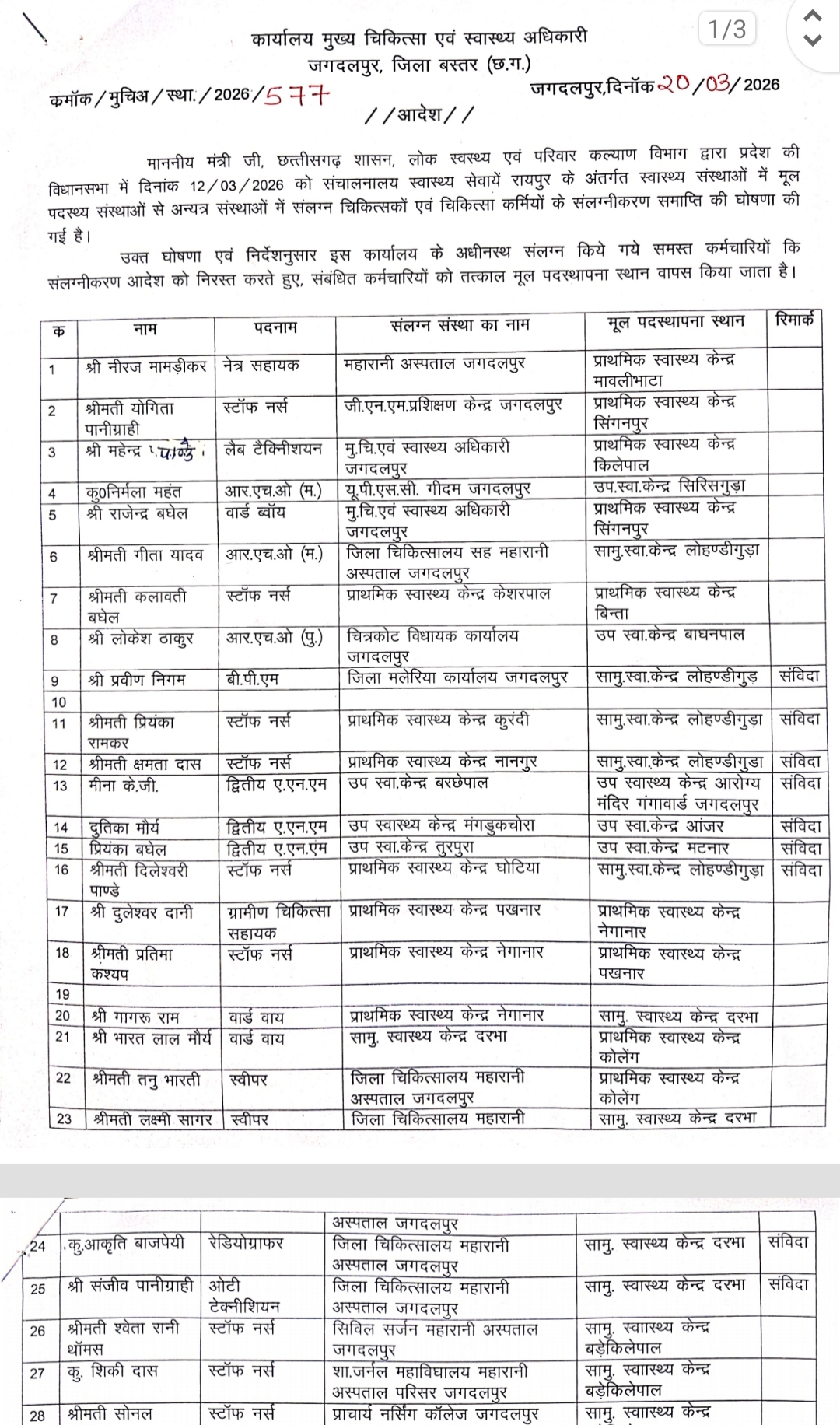 जगदलपुर। शासन द्वारा संलग्नीकरण समाप्त करने के बाद अब उन कर्मचारियों, जो अपने मूल पदास्थापना वाली जगह को छोड़ अन्य जगह संलग्न है उन्हें उनकी...