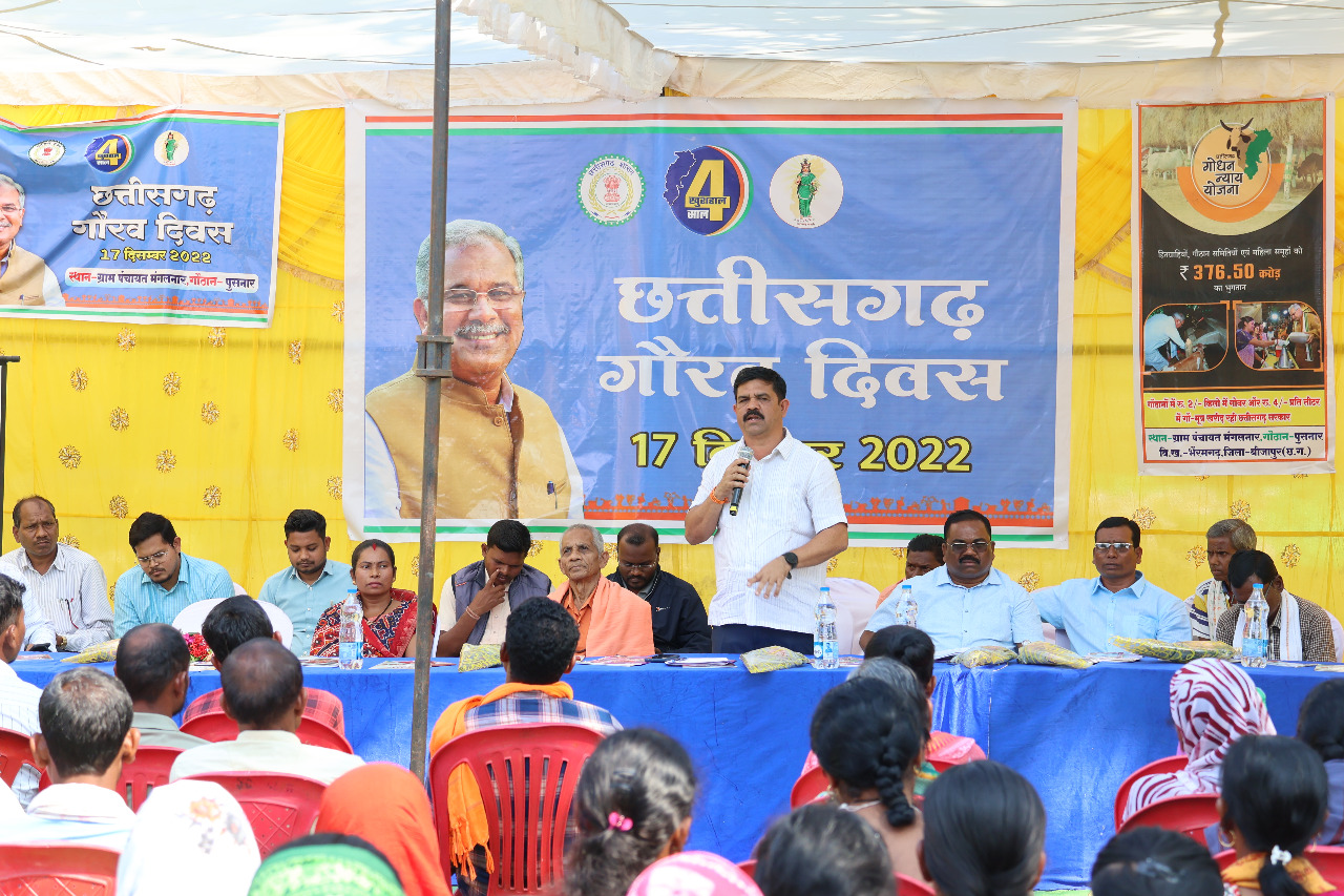 बीजापुर जिला अतिसंवेदनशील दुर्गम पहाडियों और वनो से घिरा है विपरीत. परिस्थितियों के बावजूद विकास की गति तेजी से बढ़ रही है और सबसे अधिक वनअधिकार पत्र बीजापुर जिले में यहाँ के किसानों को मिला जहाँ पहले पहुंचना मुश्किल था दूरुस्थ क्षेत्रों में वन अधिकार पत्र बिजली, सड़क, पानी, स्कूल, आंगनबाड़ी, पंचायत भवनो का निर्माण कराया गया है। इस दौरान जिला पंचायत अध्यक्ष शंकर कुड़ियम, जिला पंचायत सदस्य सोमारूराम कश्यप, संतकुमारी मंडावी, जनपद अध्यक्ष दशरथ कुंजाम,सीईओ जिला पंचायत रविकुमार साहू,अपर कलेक्टर पवन कुमार प्रेमी, एसडीएम उत्तम सिंह पंचारी, सहित जनप्रतिनिधि अधिकारी-कर्मचारी मीडिया प्रतिनिधि, गौठान समिति के सदस्य,सहित ग्रामीण जनो की गरिमामयी उपस्थिति रही।