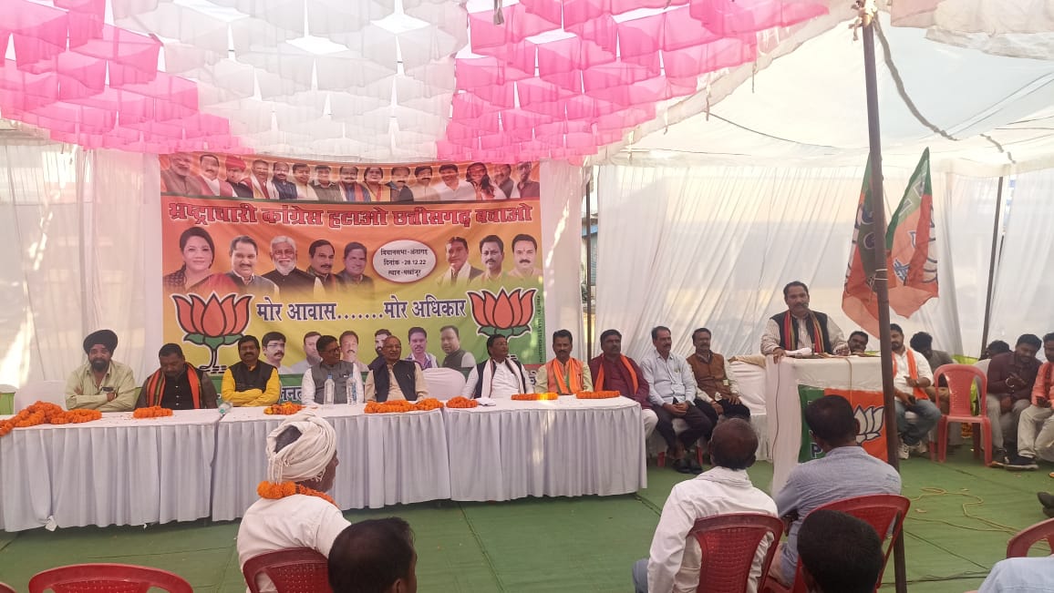 भाजपा पूर्व सांसद चंदूलाल साहू और पूर्व प्रदेश अध्यक्ष विक्रम उसेंडी ने प्रदेश की कांग्रेस सरकार पर लगाया गरीबों को आवास और केंद्र की हर योजना रोकने का लगाया आरोप