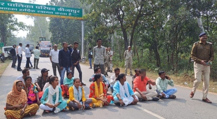 बीजापुर :- नारायणपुर जिले में आदिवासियों के साथ हुए मारपीट के विरोध में सर्व आदिवासी समाज ने 5 जनवरी को बस्तर संभाग बंद का आह्वान किया था । आदिवासी समाज के इस आह्वान का व्यापारियों ने समर्थन करते हुए अपने अपने प्रतिष्ठानों को बंद रखा । जिले के चारों विकास खंडों में बंद का असर दिनभर देखने को मिला । जिला मुख्यालय के कोत्तापाल चौक पर हाइवे पर चक्का जाम कर अपनी नौ सूत्रीय मांगों से सम्बंधित ज्ञापन राज्यपाल के नाम एसडीएम पवन प्रेमी को सौंपा गया ।