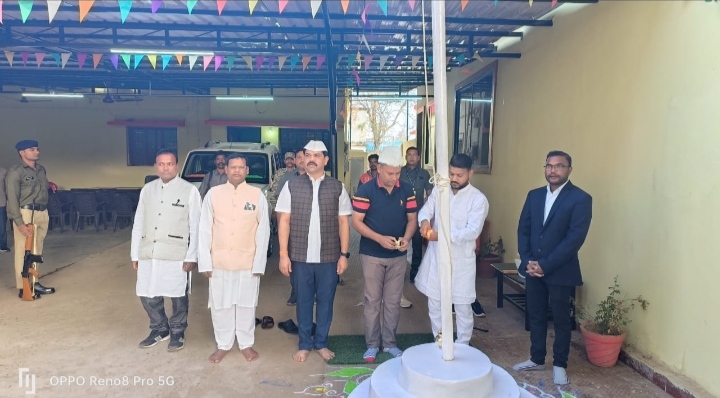 गणतंत्र दिवस पर राजेश जैन ने विधायक निवास बीजापुर में फहराया ध्वज