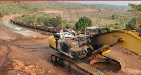 रेलवे दोहरीकरण कार्य मे लगे वाहनों में माओवादियों ने किया आगजनी का प्रयास, पुलिस पार्टी को देख भागे माओवादी