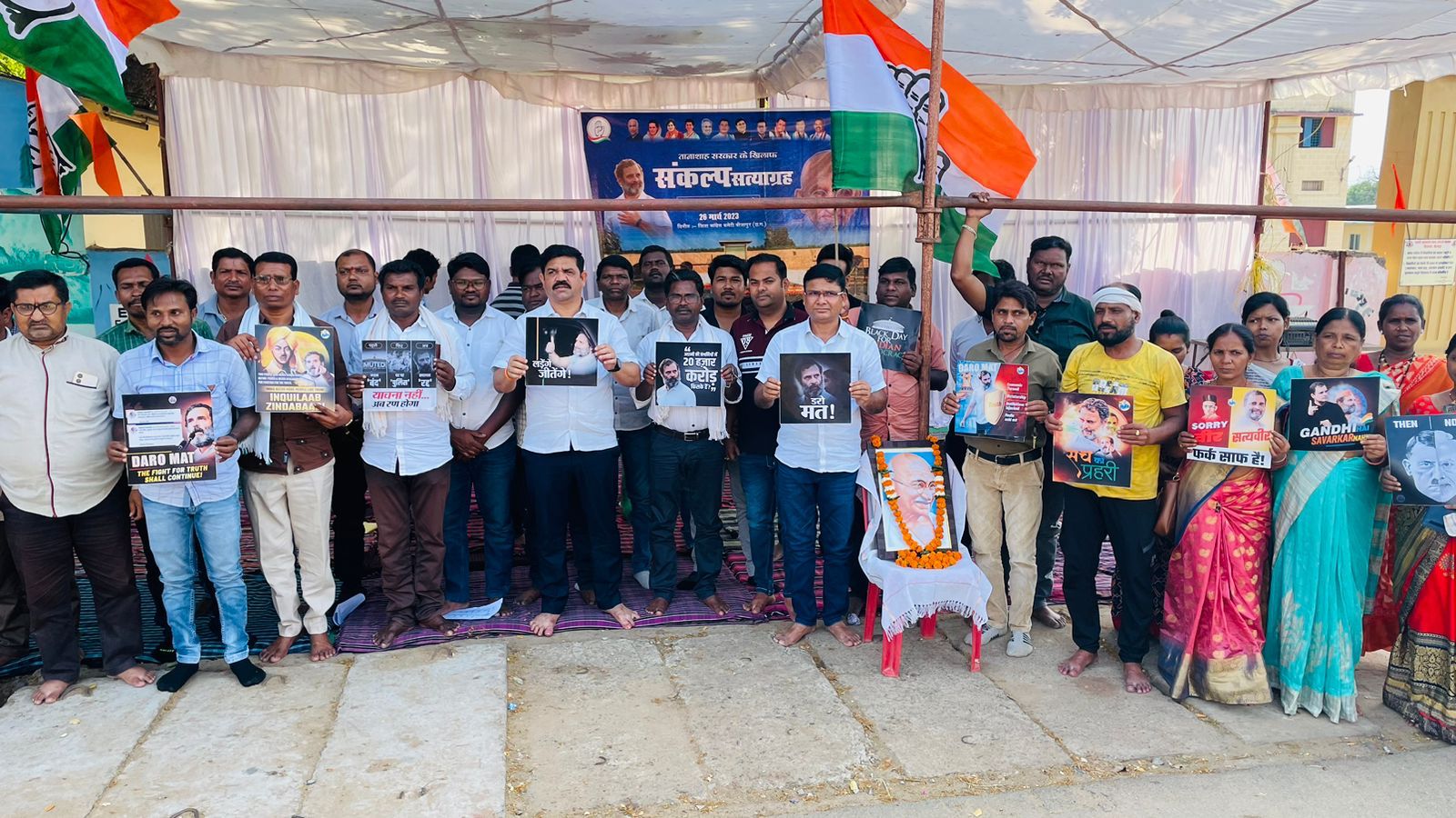 बीजापुर :- अखिल भारतीय कांग्रेस कमेटी की महासचिव एवं छत्तीसगढ़ प्रभारी मान. कुमारी शैलजा तथा प्रदेश कांग्रेस कमेटी के अध्यक्ष मान श्री मोहन मरकाम जी के निर्देशानुसार 26 मार्च को ज़िला मुख्यालय बीजापुर में तानाशाह भारतीय जनता पार्टी और मोदी सरकार द्वारा विश्व की सबसे बड़ी लोकतंत्र को ख़त्म करने की उनके ग़लत नीति और नियत के ख़िलाफ़ प्रातः 10 बजे से जिले के कांग्रेसी कार्यकर्ताओं ने राष्ट्रपिता महात्मा गांधी जी की प्रतिमा पर माल्यार्पण कर संकल्प सत्याग्रह की शुरुआत की है। कांग्रेस पार्टी के नेता व बीजापुर के विधायक विक्रम मंडावी, ज़िला कांग्रेस कमेटी बीजापुर के अध्यक्ष लालू राठौर के अलावा अन्य कांग्रेसियों ने एक सुर में कहा कि श्री राहुल गांधी की सजा और लोकसभा की सदस्यता से अयोग्यता इस बात का मजबुत संकेत है कि दुनिया का सबसे बड़ा लोकतंत्र गंभीर खतरे मे है श्री राहुल गांधी लगातार विभिन्न मंचों पर मोदी और अडानी के संबंधों पर सवाल उठा रहे है और उन्हें उजागर कर रहे है ।
