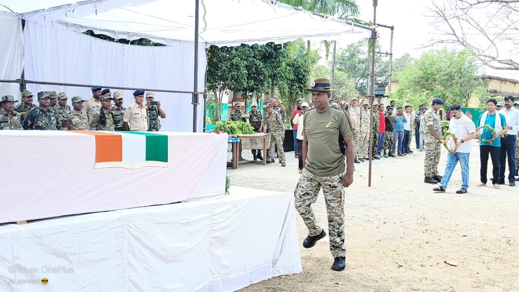 बीजापुर :- भैरमगढ़ के तिमेनार में सर्चिंग के दौरान सीएएफ के सहायक प्लाटून कमांडर विजय यादव आईईडी के चपेट में आने से शहीद हो गए। शहीद विजय यादव को भैरमगढ़ थाने में भावभीनी श्रद्धांजलि एवं सलामी दी गई। शहीद के पार्थिव शरीर को शव वाहन से जगदलपुर ले जाया गया। जगदलपुर से हेलिकाप्टर के माध्यम से उनके गृहग्राम उत्तरप्रदेश ले जाया जाएगा। श्रद्धांजलि देने विधायक विक्रम शाह मंडावी, पूर्व मंत्री महेश गागड़ा, डीआईजी कमलोचन कश्यप, कलेक्टर राजेन्द्र कुमार कटारा, पुलिस अधीक्षक आंजनेय वार्ष्णेय सहित जिला एवं पुलिस प्रशासन के अधिकारी-कर्मचारी, मीडिया प्रतिनिधि सहित गणमान्य नागरिकगण उपस्थित थे।