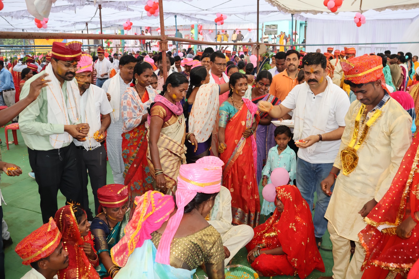 सभी वर-वधु का सामूहिक विवाह सांस्कृतिक भवन में संपन्न हुआ। जिसमें 142 जोडे़े आदिवासी, 70 जोड़े हिन्दू एवं 24 जोड़े ईसाई वर-वधू के अपने-अपने सामाजिक रीति रिवाज और विवाह संस्कार के माध्यम एक दूसरे के जीवन साथी बने।