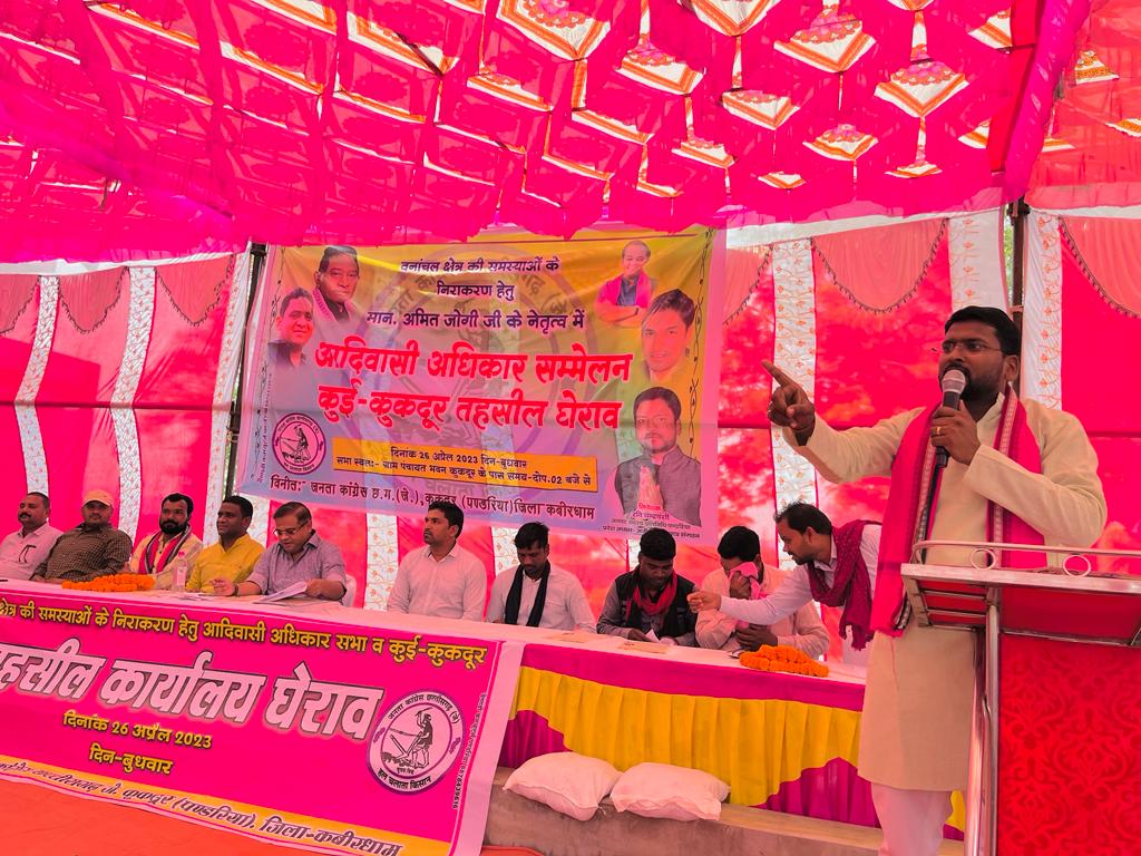 आदिवासी अधिकार सम्मेलन के रूप में आयोजित सभा को जोगी कांग्रेस जिला अध्यक्ष सुनील केसरवानी और युवा जिला अध्यक्ष अस्वनी यदु ने भी सम्बोधित करते हुए राज्य सरकार पर जनता को बिजली बिल पेंशन की राशि नियमितीकरण की मांग पर ठगने का आरोप लगाते हुए आड़े हाथों लिया
