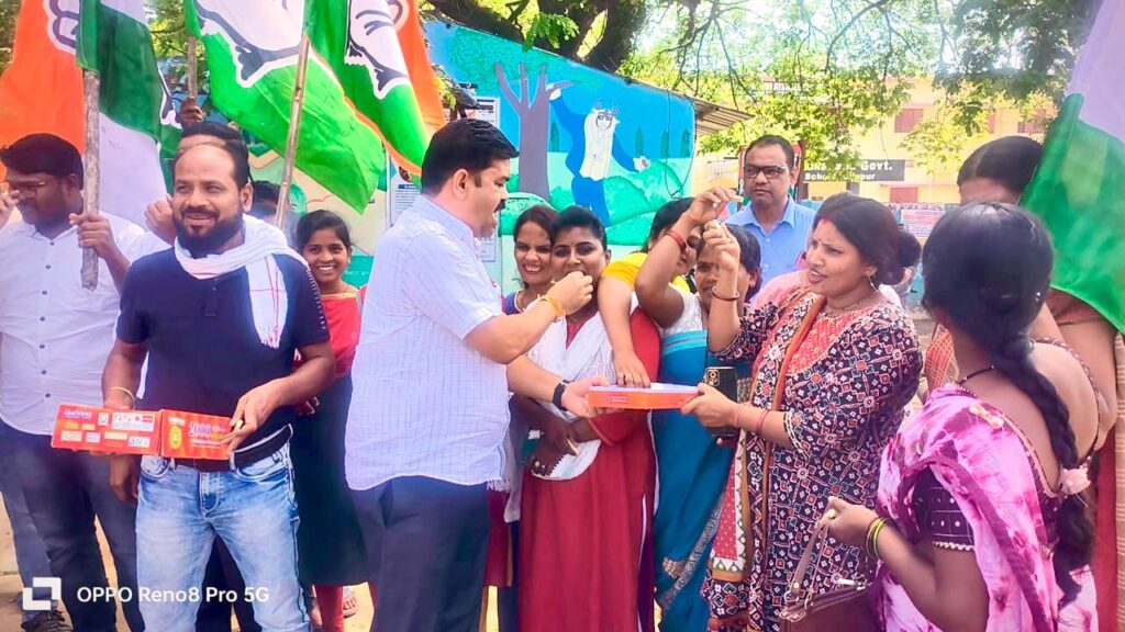 भाजपा के संस्थापक सदस्य रहे नंद कुमार साय के कांग्रेस प्रवेश करते ही कांग्रेसियों ने पटाके फोड़ एक दूसरे को खिलाई मिठाइयाँ
