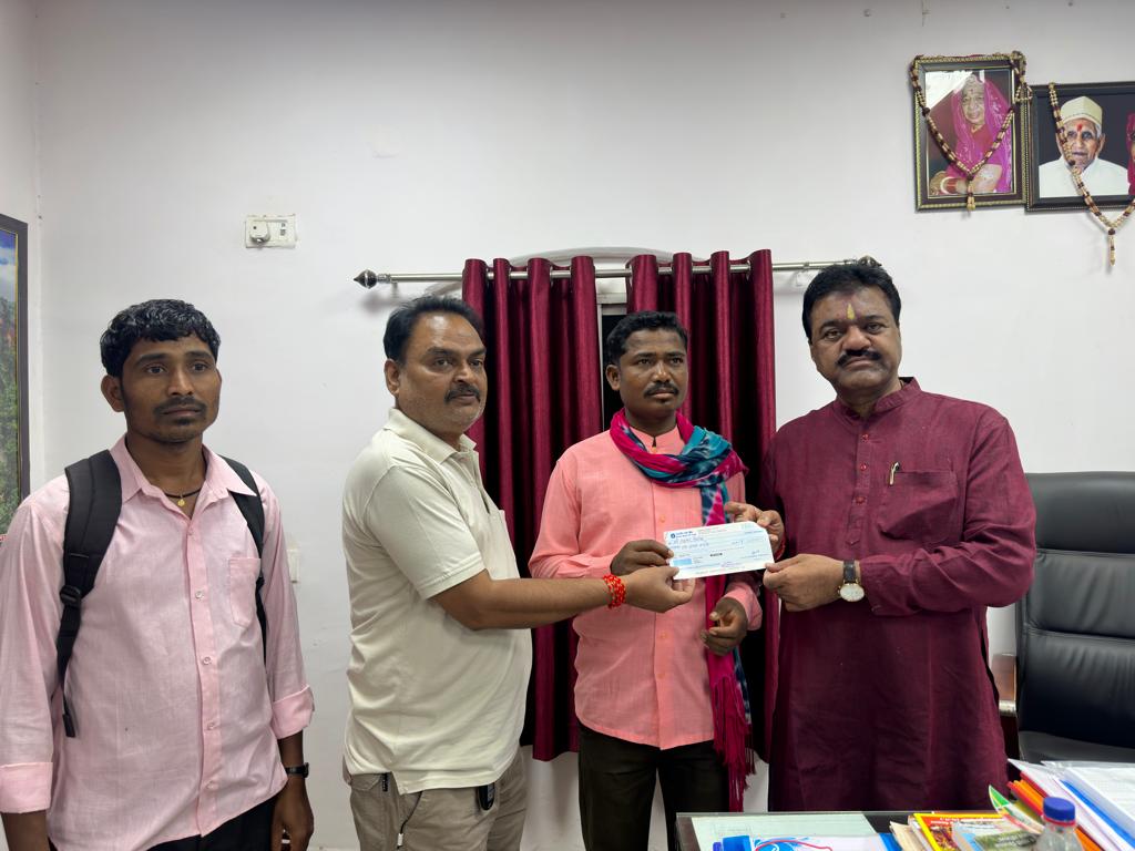 जगदलपुर :- संसदीय सचिव एवं जगदलपुर के विधायक रेखचंद जैन ने दरभा ब्लॉक के छिंदबहार निवासी रामधर को एक लाख रुपए का चेक सौंपा। छिंदबहार स्कूल की कक्षा 11वीं में अध्ययनरत रही रामधर की सुपुत्री रुक्मणी का अध्ययन अवधि के दौरान बीमारी के चलते मृत्यु हो गई थी। राज्य सरकार की योजना के तहत विधायक रेखचंद जैन ने पीड़ित पिता रामधर को एक लाख रुपए का चेक प्रदान किया। श्री जैन ने उन्हें ढांढ़स बंधाते पारिवारिक स्थिति की जानकारी ली। प्राप्त चेक राशि का सदुपयोग करने व जीवित बच्चों की परवरिश पर ध्यान देने कहा। चेक सौंपने के दौरान खंड शिक्षा अधिकारी दरभा राजेश उपाध्याय, मृत बालिका के चाचा परसुराम तथा अन्य मौजूद थे।