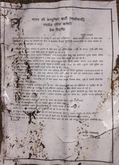 माओवादियों ने लगाया अधिकारी, कर्मचारियों और ठेकेदार पर आर्थिक लेन देन पर कमीशनखोरी का आरोप