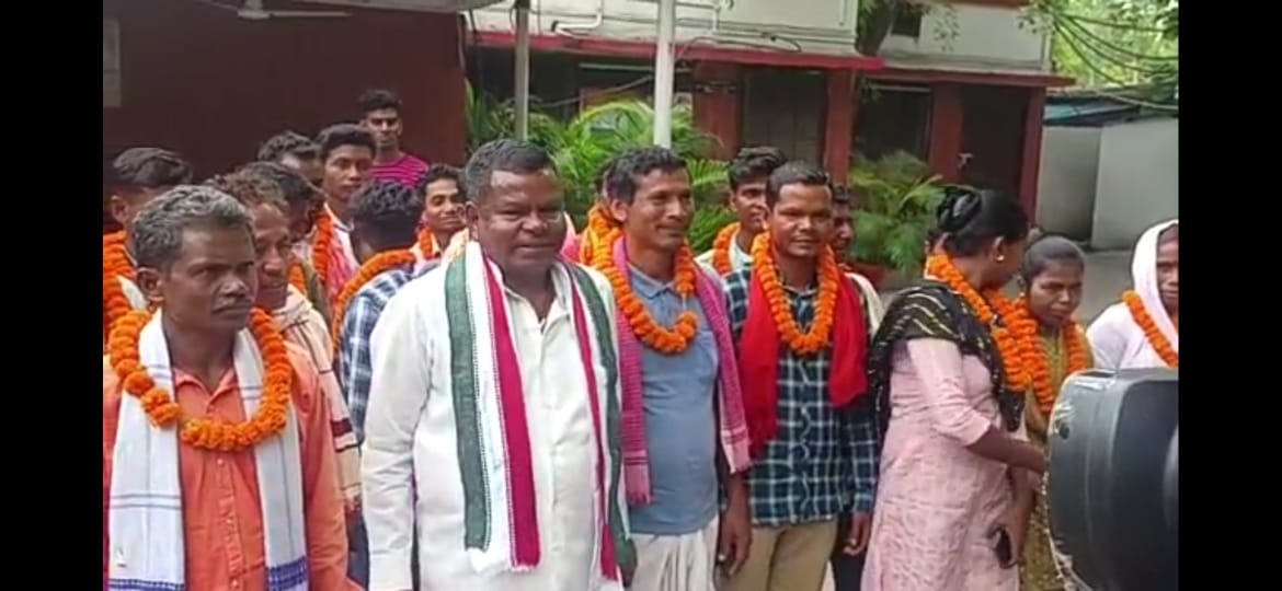 जगदलपुर :- विधानसभा क्षेत्र कोंटा के ग्राम लिटिरास के 31 ग्रामीण सोमवार की सुबह उद्योग एवं आबकारी मंत्री कवासी लखमा के रायपुर स्थित बंगले में कांग्रेस में शामिल हो गए। मंत्री ने सभी ग्रामीणों का पुष्पहार पहनाकर स्वागत कर उन्हें कांग्रेस में प्रवेश कराया।