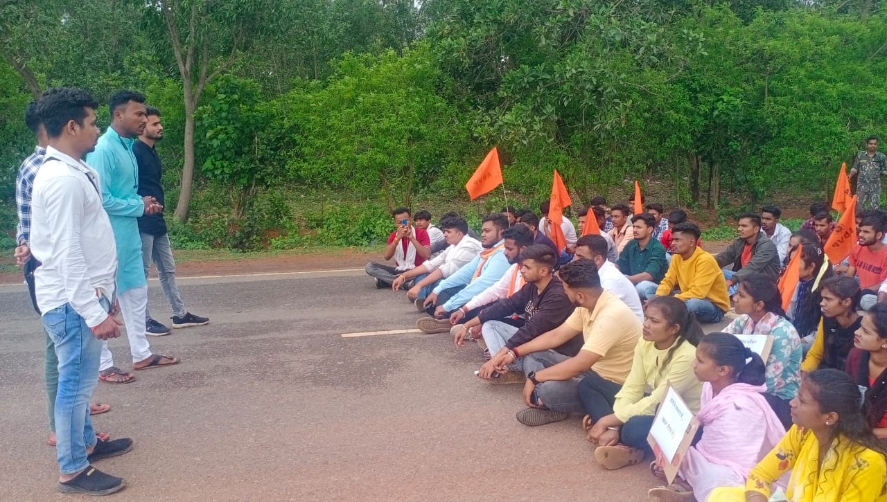 बकावंड :- शासकीय महाविद्यालय बकावंड से जुड़ी समस्याओं के निराकरण के लिए बस्तर क्षेत्र के विधायक एवं बस्तर आदिवासी विकास प्राधिकरण के अध्यक्ष लखेश्वर बघेल द्वारा किए गए वादे आज तक पूरे नहीं हो सके हैं। अखिल भारतीय विद्यार्थी परिषद के कार्यकर्त्ताओं ने विधायक को उनके वादे याद दिलाने के लिए शुक्रवार को महाविद्यालय के छात्र छात्राओं के साथ मुख्य मार्ग पर चक्काजाम कर दिया। काफी देर तक आवागमन बाधित रखने के बाद छात्र नेताओं ने तहसीलदार को ज्ञापन सौंपा। अभाविप ने चेतावनी दी है कि 15 दिनों के भीतर मांगें पूरी न होने पर बड़ा आंदोलन शुरू कर दिया जाएगा।