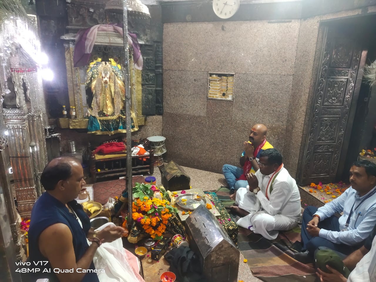 मंदिर के पुजारी ने पीतवस्त्र और तुलसी की माला पहनाकर प्रसाद दिए। सावन के महीने में महाकाल दर्शन के दौरान बड़ी संख्या में श्रद्धालुओं की भीड़ मंदिर में थी। वहां मंत्री कवासी लखमा ने जमीन पर बैठकर ईश्वर की आराधना में लीन रह काफी देर तक पूजा की।
