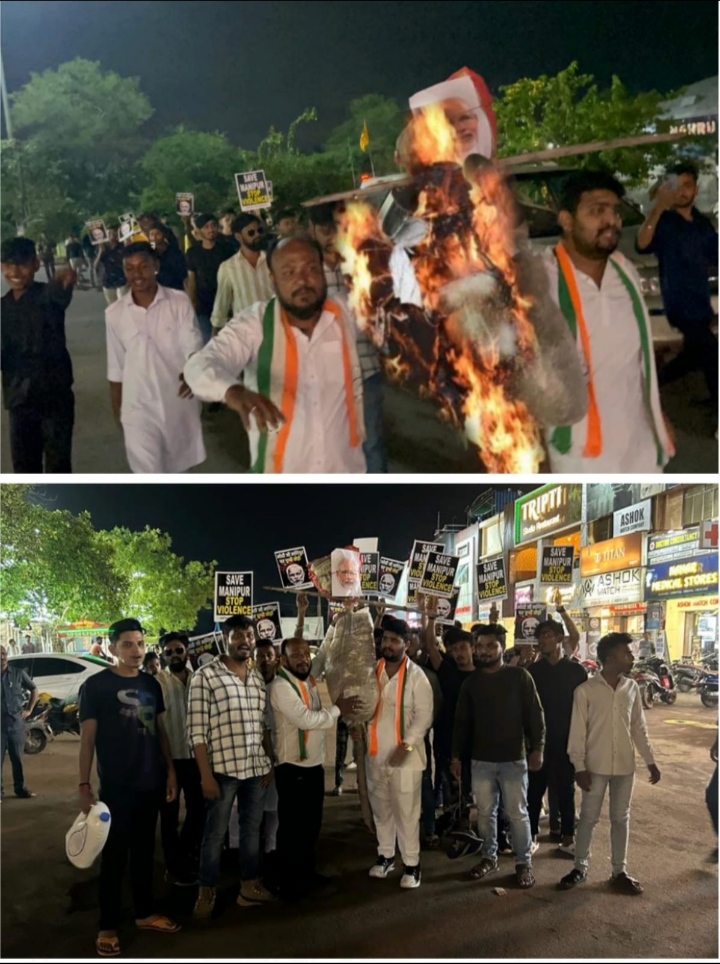 मणिपुर घटना के विरोध में प्रधानमंत्री का किया गया पुतला दहन