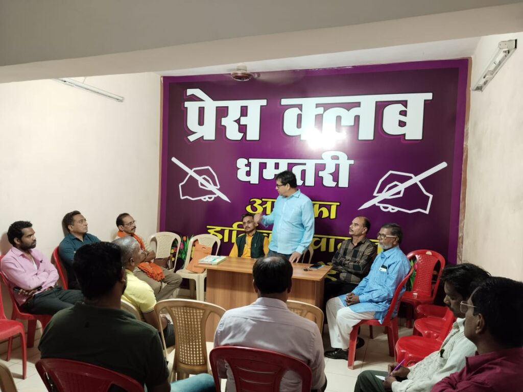 धमतरी जिले में 30 जुलाई को आयोजित बैठक में प्रेस क्लब अध्यक्ष दीप शर्मा, पूर्व अध्यक्ष मो. शाह, भूपेंद्र साहू, राज सोनवानी, सतेंद्र शर्मा, रोशनलाल सिन्हा, नरेश चंद्र श्रोती, विक्रांत शर्मा, पवन तिवारी, उमेश सिंह वशिष्ट,भूपेंद्र पटवा, विशाल ठाकुर, रामाधार यादव शामिल थे। पत्रकारों के हितों के लिये आवश्यक सुझाव जल्दी ही भेजने की बात यहां हुई।