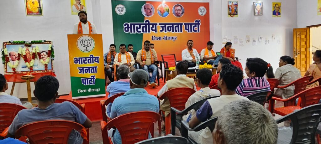 बीजापुर :- बीजापुर भाजपा का मंडल बैठक अटल सदन बीजापुर में आहूत की गई थी,बैठक में मंडल कार्यकारिणी व बीएलए 2 पदाधिकारी विशेष रूप से अपेक्षित रहे। आज के मंडल बैठक में भाजपा जिलाध्यक्ष माननीय श्रीनिवास मुदलियार जी ने विशेष मार्गदर्शन दिए एंव मंचासीन पदाधिकारी गोपाल पवार जी,जिलाराम राना जी, फूलचंद गागड़ा जी,नंदू राना जी,हरिहर साहनी जी, उर्मिला तोकल जी का भी मार्गदर्शन प्राप्त हुआ।