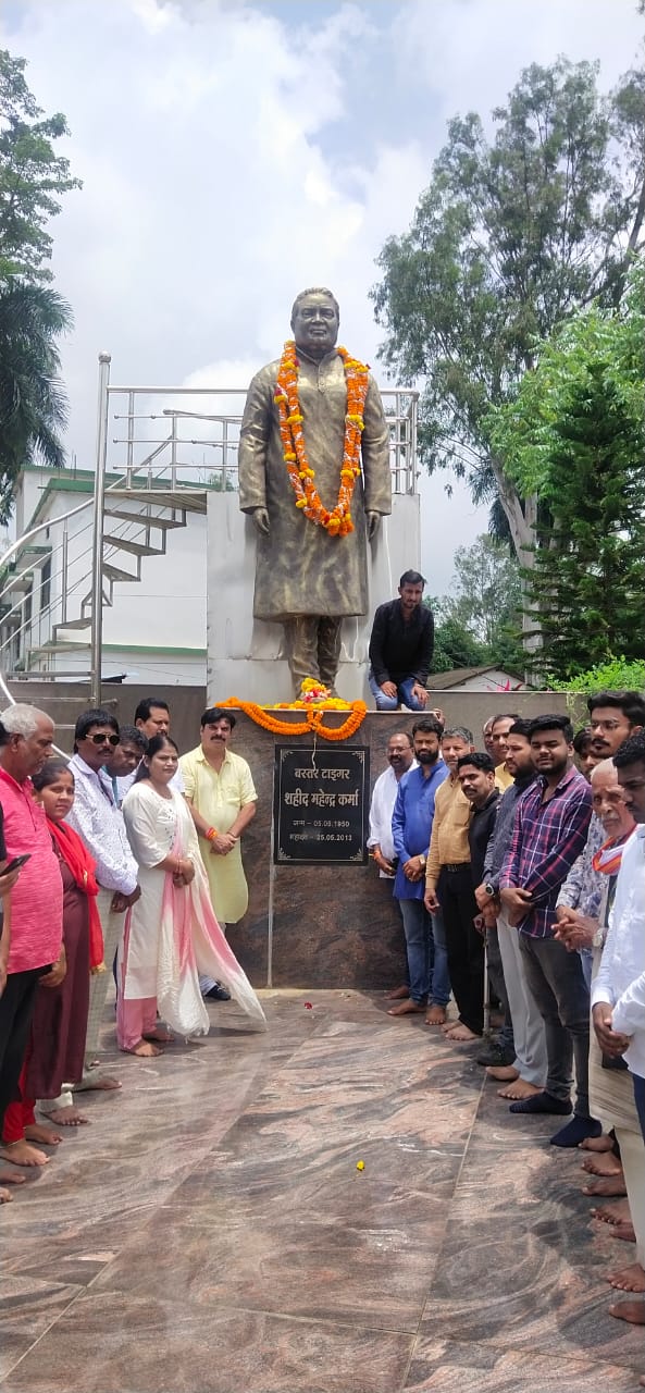 जगदलपुर :- बस्तर टाईगर शहीद महेंद्र कर्मा की जयंती 5 अगस्त को यहां कोंग्रेस भंवन में सादगी व गरिमा के साथ मनाई गई। ततपश्चात शहर के हृदय स्थल झंकार चौक पर वरिष्ठ नेताओं, पदाधिकारियों व कार्यकर्ताओं की उपस्थिति में शहीद महेंद्र कर्मा की आदमकद मूर्ति पर माल्यार्पण कर श्रद्धांजलि अर्पित की गई।