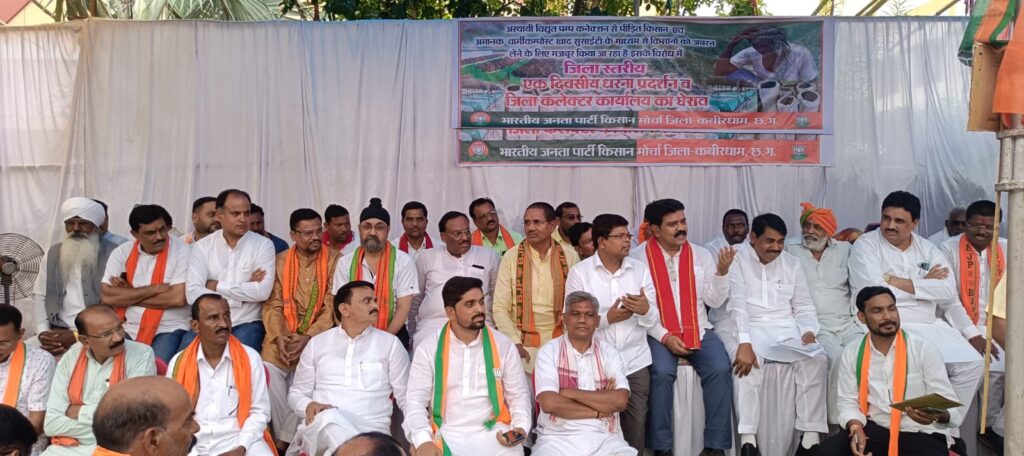 इससे पूर्व धरना को संबोधित करते हुए भाजपा के प्रदेश महामंत्री विजय शर्मा ने कहा कि न्याय योजना के नाम पर भूपेश बघेल सरकार किसानों के साथ अन्याय कर रही है. उन्हें जबरदस्ती अमानक वर्मी कम्पोस्ट खाद खरीदने को मजबूर किया जा रहा है । श्री शर्मा ने कहा कि कांग्रेस ने जिस घोषणापत्र के सहारे चुनाव जीता था उसकी घोषणाएं अब तक पूरी नहीं हुई हैं. मुख्यमंत्री जिस छत्तीसगढ़िया वाद की दुहाई देते हैं उसे कैसे पूरा करते हैं ये इसी से स्पष्ट है कि प्रदेश से राज्यसभा में भेजे गए तीनों सांसद बाहरी हैं.पूरे प्रदेश में किसान कांग्रेस सरकार से त्रस्त है। पहले घटिया बारदाने देकर किसानों को परेशान किया अब घटिया व अमानक खाद दे रही है भूपेश सरकार। भाजपा जिलाध्यक्ष अशोक साहू ने कहा कि पांच सालो के शासन में भूपेश सरकार ने पूरे छ.ग. को अपराधगढ़ बना दिया है । छ.ग. में माफियाराज चल रहा है । केन्द्रीय मद की राशियों का बंदरबांट किया जा रहा है ।