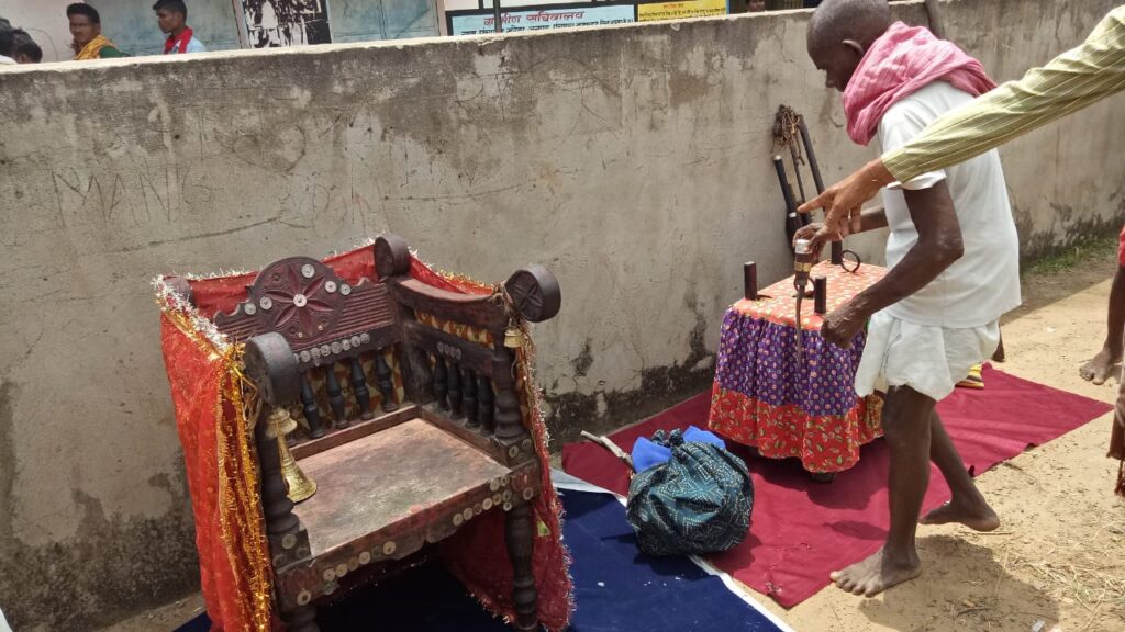 ग्राम देवता के आसन, छत्र के साथ सड़क पर उतरे ग्रामीण