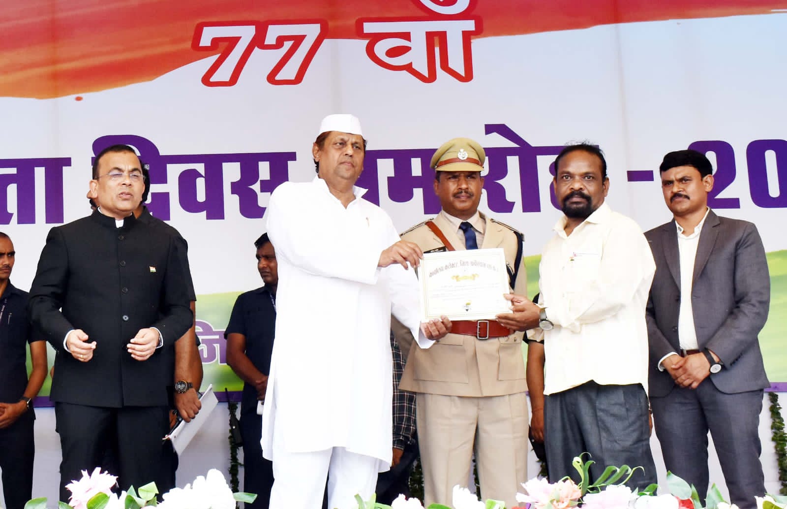 कवर्धा :- 15 अगस्त 2023। प्रदेश के वन, परिवहन, आवास एवं पर्यावरण, जलवायु परिवर्तन मंत्री तथा कवर्धा विधायक मोहम्मद अकबर ने 77वां स्वतंत्रता दिवस पर पीजी कालेज मैदान में ध्वजारोहण किया। कैबिनेट मंत्री अकबर ने जनसंपर्क विभाग में पदस्थ वरिष्ठ दफ्तरी रामसिंह बघेल को सम्मानित किया। उन्हें यह सम्मान उनके द्वारा किए गए विभागीय उत्कृष्ट कार्य के लिए मिला है।