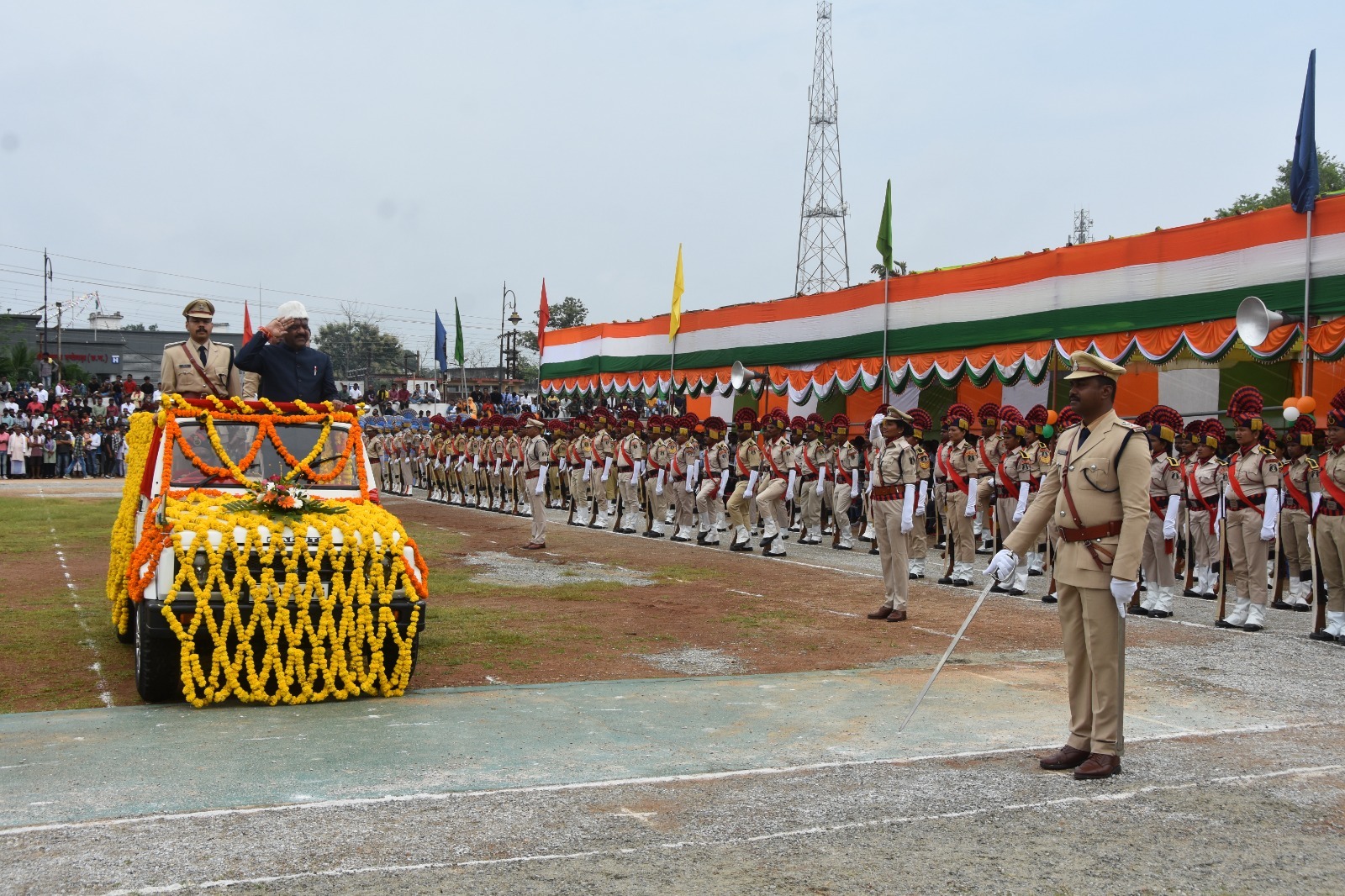 दंतेवाड़ा :- जिले में 77वां स्वतंत्रता दिवस हर्षोल्लास के साथ गरिमामय वातावरण में मनाया गया। मुख्य समारोह जिला मुख्यालय के शासकीय हाई स्कूल मैदान पर हुआ। मुख्य अतिथि संसदीय सचिव एवं जगदलपुर के विधायक रेखचंद जैन थे। कलेक्टर विनीत नंदनवार और पुलिस अधीक्षक गौरव राय ने मुख्य अतिथि का स्वागत किया। संसदीय सचिव रेखचंद जैन ने ध्वजारोहण कर राष्ट्रगान के बीच राष्ट्रध्वज को सलामी दी। उन्हें गार्ड ऑफ ऑनर दिया गया।