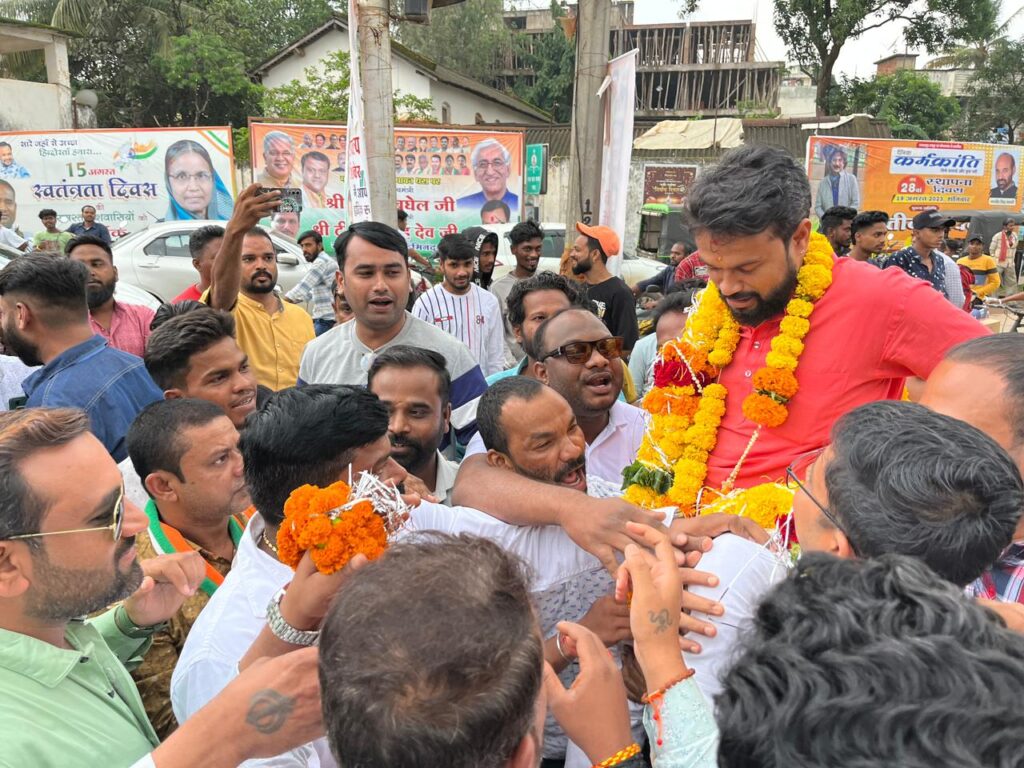 जगदलपुर :- युवा नेता एवं बस्तर सांसद प्रतिनिधि सुशील मौर्य के शहर जिला कांग्रेस कमेटी अध्यक्ष बनने पर जगदलपुर के स्थानीय राजीव भवन में जगदलपुर विधायक रेखचंद जैन सहित समस्त कार्यकर्ताओं ने आतिशबाजी करते हुए फूल माला पहना कर नव नियुक्त शहर जिला अध्यक्ष का स्वागत किया।