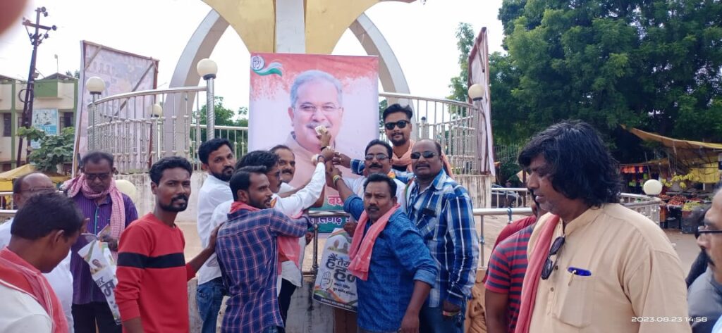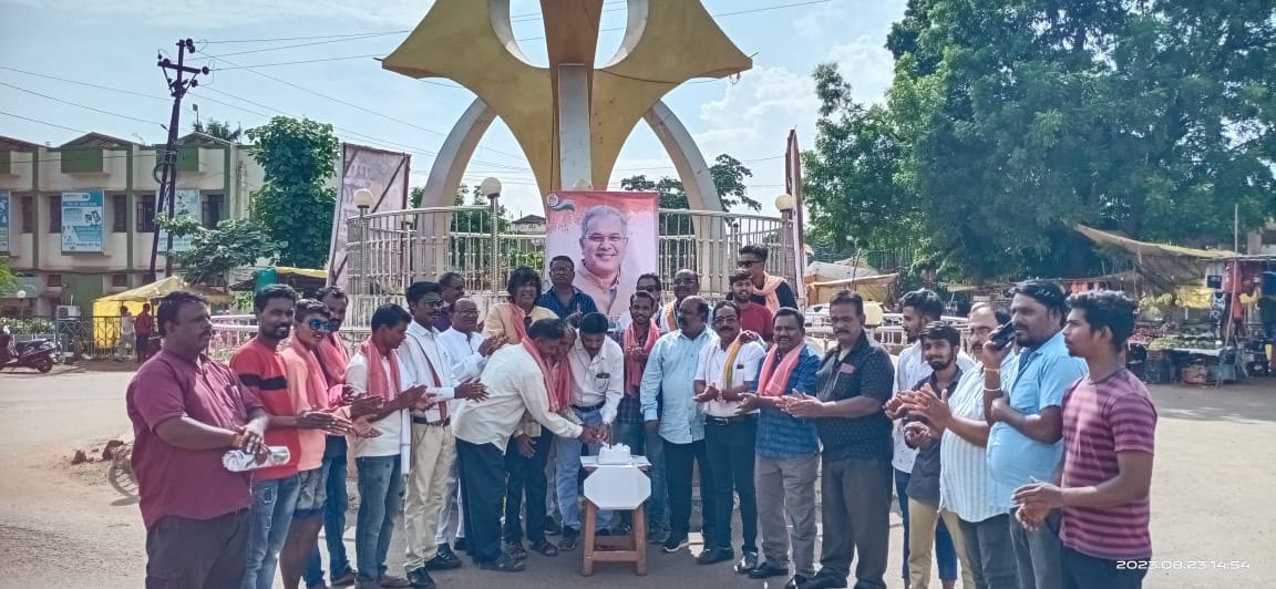 किसान नेताओं तथा कांग्रेस के पदाधिकारियों ने मुख्यमंत्री भूपेश बघेल के जन्मदिन की खुशी में केक काटा और एक दूसरे का मुंह मीठा कराया। चौक से गुजर रहे लोगों को भी केक खिलाया गया। इस अवसर पर किसान सम्मान समारोह आयोजित किया गया। अतिथि ब्लॉक अध्यक्ष अशोक बांबेश्वर, नगर पालिका अध्यक्ष शीबू नायर, मंत्री के मीडिया प्रभारी विवेक मसीह, प्रदेश कार्यकारी अध्यक्ष सेवादल संतोष पाण्डेय और नोमेश रामटेके नगर अध्यक्ष किसान कांग्रेस ने किसानों का शॉल श्रीफल और किसान गमछा के साथ सम्मान किया। हैं तैयार हम, भरोसा बरकरार फिर से कांग्रेस सरकार के नारे के साथ किसानों व नगरवासियों को थैला, भूपेश सरकार के जन कल्याण कारी योजनाओं का पाम्पलेट बांटे गए। भूपेश सरकार द्वारा किसानों को फायदा पहुंचाने के लिए चलाई जा रही योजनाओं के बारे में बताया गया। इन योजनाओं का लाभ आज किसानों को मिल रहा है। इसी आधार पर आगामी विधानसभा चुनावों में कांग्रेस को वोट देकर फिर से कांग्रेस की सरकार बनाने में मदद करने की अपील की गई।कार्यक्रम का संचालन किसान कांग्रेस नगर अध्यक्ष नोमेश रामटेके ने और आभार प्रदर्शन आदिल खान ने किया।