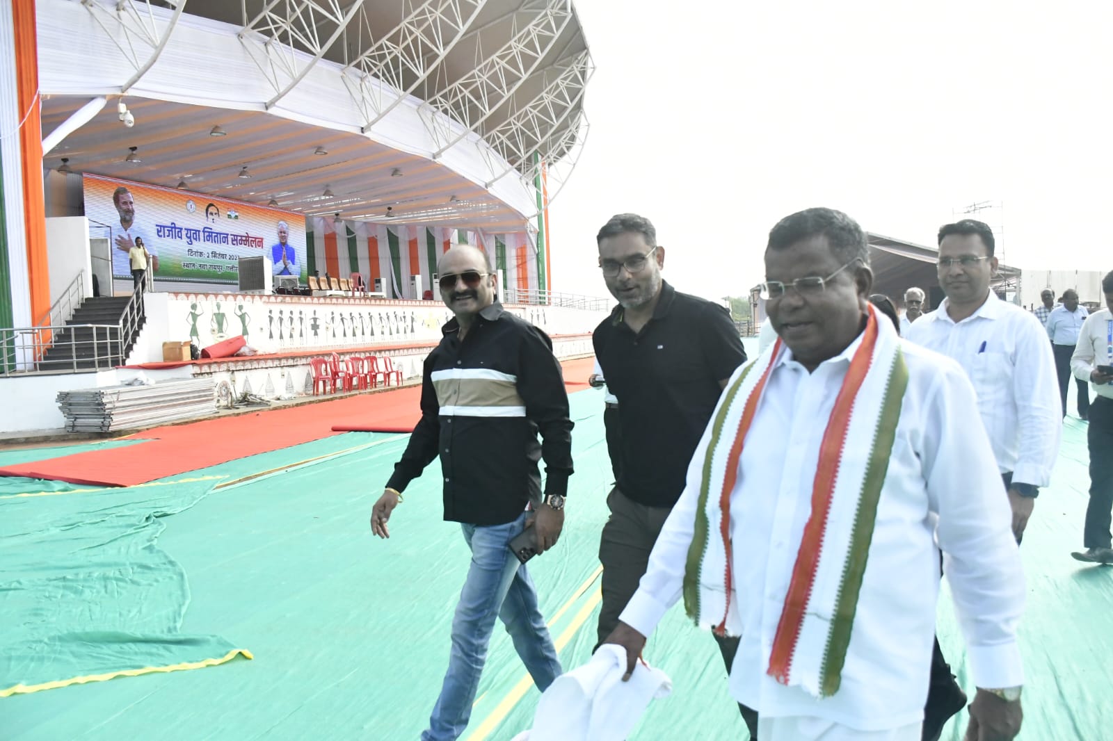 रायपुर :- केबिनेट मंत्री कवासी लखमा ने आगामी 2 सितंबर को होने वाले राजीव युवा मितान कार्यक्रम के आयोजन स्थल का निरीक्षण किया। उन्होंने व्यवस्था के बारे में जानकारी लेते हुए अधिकारियों से चर्चा की। सभा स्थल, पंडाल, ग्रीन रूम, सीटिंग अरेंजमेंट आदि के विषय मे जानकारी ली। कांग्रेस के पूर्व अध्यक्ष राहुल गांधी 2 सितंबर को रायपुर आएंगे। वे मेला ग्राउंड नवा रायपुर में आयोजित राजीव युवा मितान सम्मेलन को संबोधित करेंगे। मेला ग्राउंड में विशाल राजीव युवा मितान सम्मेलन होना है। सम्मेलन को राहुल गांधी विशेष रूप संबोधित करेंगे।कार्यक्रम में कांग्रेस की राष्ट्रीय महासचिव एवं छत्तीसगढ़ प्रभारी कुमारी सैलजा, मुख्यमंत्री भूपेश बघेल, प्रदेश कांग्रेस अध्यक्ष दीपक बैज, छत्तीसगढ़ विधानसभा अध्यक्ष डॉ. चरणदास महंत, उप मुख्यमंत्री टीएस सिंहदेव, अभा कांग्रेस कमेटी के सचिव एवं प्रभारीद्वय डॉ. चंदन यादव, सप्तगिरीशंकर उल्का व सह प्रभारी विजय जांगिड़, सभी मंत्री एवं प्रदेश के वरिष्ठ नेता शामिल होंगे।