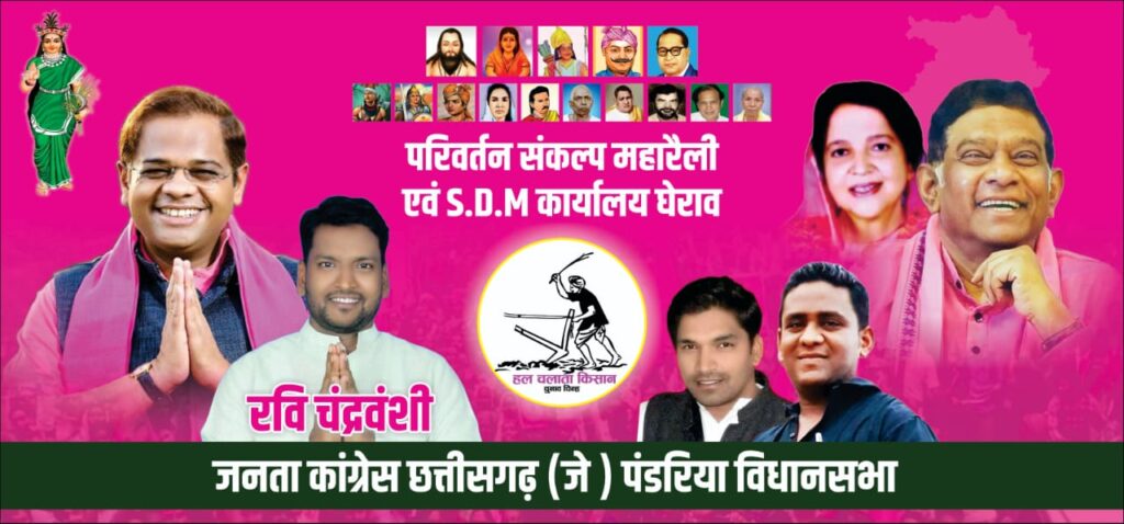 पंडरिया विधानसभा में जोगी कांग्रेस के सक्रिय युवा नेता रवि चंद्रवंशी(प्रदेश अध्यक्ष अजीत जोगी छात्र संगठन) ने विज्ञप्ति जारी कर बताया कि हम लोग किसान, मजदूर, गरीब, पिछड़े की मदद करते हुए आगे बढ़ रहे हैं क्यों कि अब चुनावी समय है तो एक राजनीतिक दल के सदस्य होने के नाते चुनावी तैयारी के लिए अपनी कार्यो की समीक्षा करना आवश्यक है,4 सितंबर को होने वाले परिवर्तन संकल्प महारैली में हमारे मुखिया अमित जोगी जी के साथ हमारे क्षेत्र के वही हजारों लोग शामिल होने वाले हैं जिनकी मदद हम विगत 7 सालों से किसी न किसी रूप में करते आये है और यही लोग हमारी सबसे बड़ी ताकत होंगे।