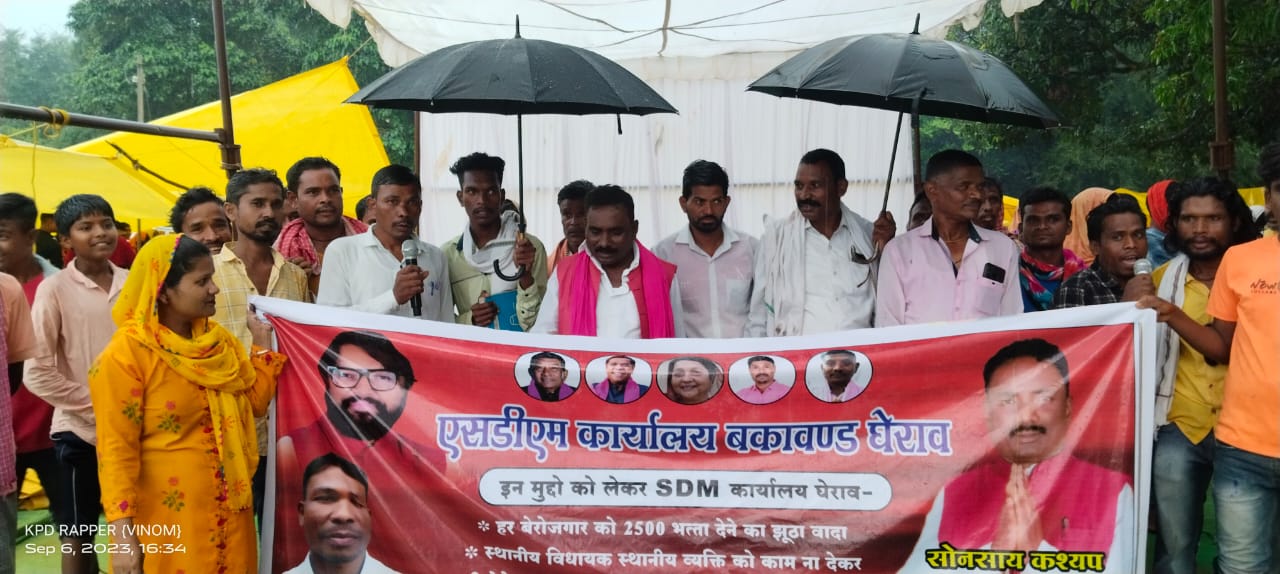 सोनसाय कश्यप ने कहा कि कांग्रेस ने राज्य के हर बेरोजगार युवा को 2500 रु. बेरोजगारी भत्ता देने, गरीबी रेखा के नीचे जीवन यापन करने वाले हर परिवार को भूमि पट्टा देने, वृद्धा विधवा पेंशन 1500 रु. देने, संविदा कर्मियों का नियमितीकरण करने, प्राइमरी, मिडिल व हायर सेकंडरी स्कूलों में उच्च स्तरीय की शिक्षण व्यवस्था उपलब्ध कराने, हर मरीज को उच्च स्तर के इलाज की सुविधा देने, हर गरीबी परिवार को पक्का मकान देने का वादा किया था। इनमें से एक भी वादा नहीं निभाया गया है। इसके विरोध में कार्यकर्त्ताओं ने एसडीएम कार्यालय का घेराव किया। सोनसाय कश्यप ने कहा कि 5 साल तक बस्तर के जनता को बेवकूफ बनाकर गन्ने की तरह चूसा गया है।बस्तर की जनता अब जाग उठी है। जनता का शोषण करना बंद करना होगा।