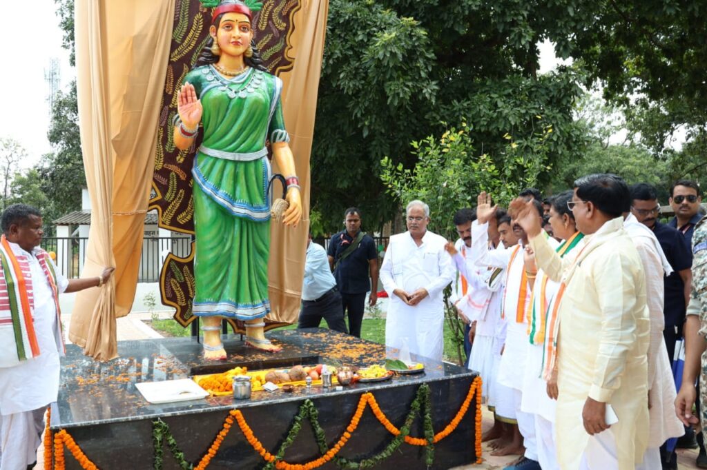 मुख्यमंत्री भूपेश बघेल ने बीजापुर स्थित कलेक्टर कार्यालय परिसर में छत्तीसगढ़ महतारी की प्रतिमा का किया अनावरण