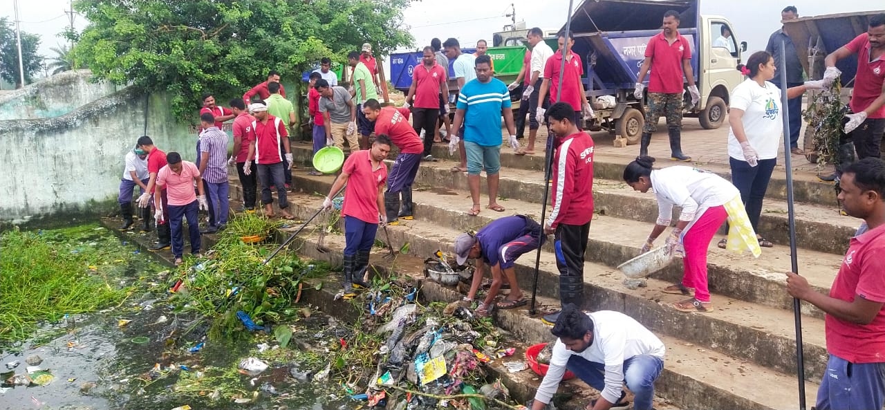 दलपत सागर के संरक्षण व सफाई के कार्य में कलेक्टर विजय दयाराम के. के मार्गदर्शन में चलाए जा रहे महा अभियान में रविवार को नगर के सैकड़ों लोगों ने सक्रिय भूमिका निभाई। इस दौरान निगम आयुक्त हरेश मंडावी सहित जिला प्रशासन व नगर निगम के अधिकारी कर्मचारियों, राज्य आपदा मोचन बल के जवानों, समाजसेवी संगठनों के साथ ही बड़ी संख्या में गणमान्य नागरिकों ने उत्साहपूर्वक साफ- सफाई कार्य में भाग लिया। सभी लोगों ने सुबह से ही दलपत सागर के रानी घाट के समीप एकत्रित होकर सरोवर से जलकुंभियों को निकालने के लिए लगातार हाथ बंटाया। रविवार को सभी ने अधिक समय तक ज्यादा जलकुंभियों को निकालने की बात कहते हुए आगामी रविवार को फिर से ज्यादा लक्ष्य रखने का संकल्प लिया। इस दौरान पार्षद योगेंद्र पांडे , राजीव युवा मितान के समन्वयक सुशील मौर्य, युवोदय के वॉलिंटियर, स्वच्छता ब्रांड एंबेसडर, निगम अमला, नागरिक उपस्थित थे।