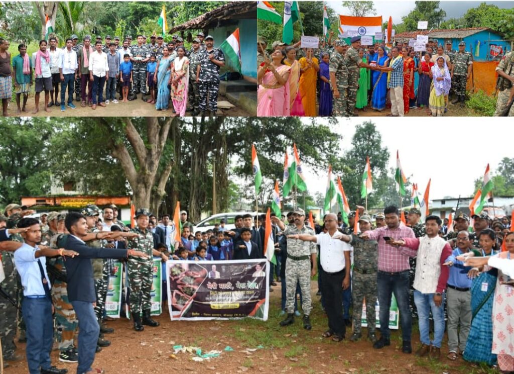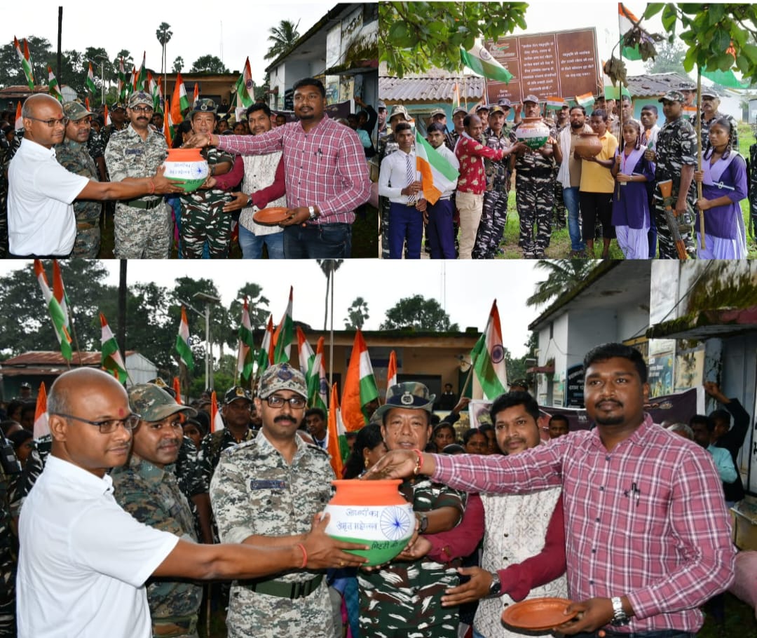 बीजापुर :- आज दिनांक 25 सितम्बर 2023 को ‘‘आजादी के अमृत महोत्सव‘‘ के अंतर्गत ‘‘मेरी माटी मेरा देश‘‘ के द्वितीय चरण के दौरान बीजापुर तथा भैरमगढ़ ब्लाॅक के 09 ग्राम पंचायतों के सभी गांवों में ‘‘अमृत कलश यात्रा‘‘ का कार्यक्रम किया गया। जिसमें काफी संख्या में ग्रामीण, विद्यार्थी, अध्यापक, शहीदों के परिजन तथा प्रषासनिक अधिकारियों एवं अन्य कार्मिकों के साथ बीजापुर तथा भैरमगढ़ जैसे अतिसंवेदनशील व नक्सलग्रस्त ईलाके में तैनात के.रि.पु.बल के अधिकारियों व जवानों ने भाग लिया।