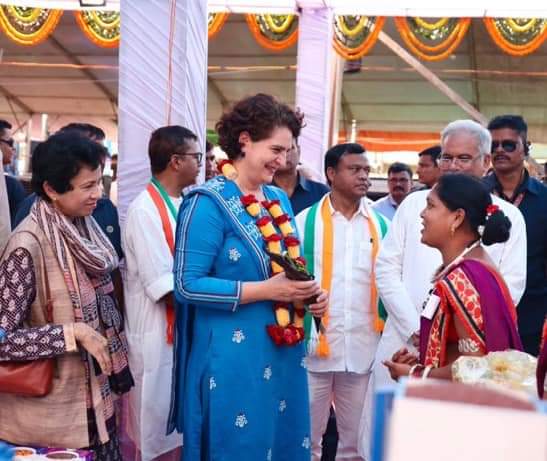 प्रियंका गांधी ने कहा कि आपका भरोसा हमारे साथ बना है। जब इंदिरा जी छत्तीसगढ़ आईं थीं तब उन्होंने स्वामी आत्मानंद से कहा कि शिक्षा का विकास करना है, आज भूपेश बघेल की सरकार यह कार्य कर रही है। आज आपकी सरकार आपको आगे बढाने का काम कर रही है। यहां का मिलेट्स प्रोसेसिंग प्लांट एशिया का सबसे बड़ा प्लांट है। बस्तर आज प्रमुख पर्यटन स्थल बन गया है, बहुत सारे लोगों को रोजगार मिल रहा है। 60 से ज्यादा वनोपज समर्थन मूल्य पर खरीदे जा रहे हैं। इतना सारा काम आपके क्षेत्र में हो रहा है, लोग पहले यहां आने से डरते थे, हर तरफ हिंसा भय और उत्पीड़न था, आज सरकार ने इस रास्ते से आपको निकाला है। उन्होंने कहा कि जनता की भलाई के लिए नियत की जरूरत है। इंदिरा जी की नीयत सही थी, इसलिए आज भी उन पर भरोसा है, भूपेश बघेल पर भी भरोसा है। क्योंकि हमारी सरकार ने तेंदूपत्ता का दाम 4 हजार रुपए किया। 5 लाख तक मुफ्त इलाज और सरकारी कॉलेजों में छात्राओं के लिए मुफ्त शिक्षा की व्यवस्था की है। स्व-सहायता समूह की महिलाओं का करोड़ों रुपए का कर्ज माफ किया गया। इस तरह की योजनाएं आपके लिए बनाई गई ताकि आपको सीधा लाभ मिले। आज छत्तीसगढ़ की पूरे देश मे पहचान है, सम्मान है। छत्तीसगढ़ आज सामाजिक और सांस्कृतिक तौर पर विकसित हो रहा, यहां भगवान रामजी ने 14 वर्ष बिताए, जहां समय बिताए, उसका रामवनगमन पथ के रूप में विकास कर रहे हैं। भूपेश बघेल ने सभी वर्ग के लिए काम किया है। मनरेगा योजना भी हमारी सरकार ने लाई है।