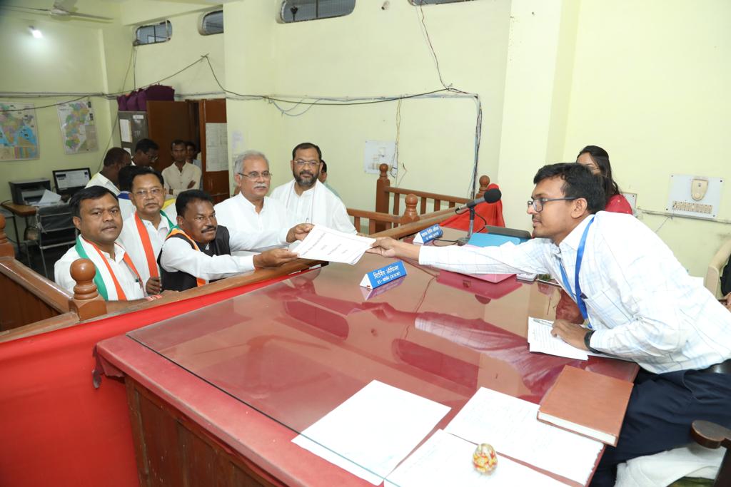 जगदलपुर :- बस्तर संभाग की तीन विधानसभा सीटों के कांग्रेस प्रत्याशियों ने बुधवार को मुख्यमंत्री भूपेंश बघेल, प्रदेश कांग्रेस कमेटी के अध्यक्ष एवं बस्तर लोकसभा क्षेत्र के सांसद दीपक बैज और विधानसभा अध्यक्ष डॉ. चरणदास महंत की उपस्थिति में नामांकन पत्र दाखिल किया।