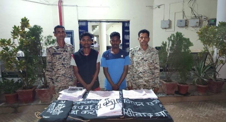 चुनाव बहिष्कार के बेनर पोस्टर लगाते दो माओवादी गिरफ्तार एक हुआ फरार