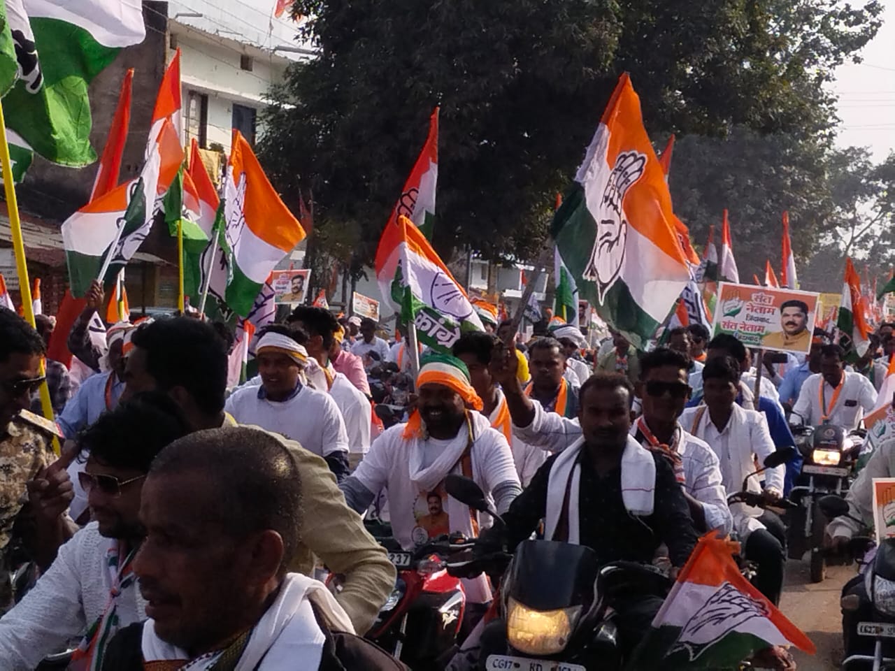 केशकाल :- केशकाल विधानसभा क्षेत्र के कांग्रेस प्रत्याशी संतराम नेताम शनिवार को रावण भाठा से विशाल बाइक रैली निकाल कर विपक्ष की नींद खराब हराम कर दी। बाइक रैली में करीब दस हजार युवाओं सहित बड़ी संख्या में कांग्रेस के दिग्गज नेता शामिल हुए।करीब तीन किलो मीटर लंबी रैली का काफिला जब शुरू हुआ तो आधे घंटे तक सड़क जाम की स्थिति बनी रही।