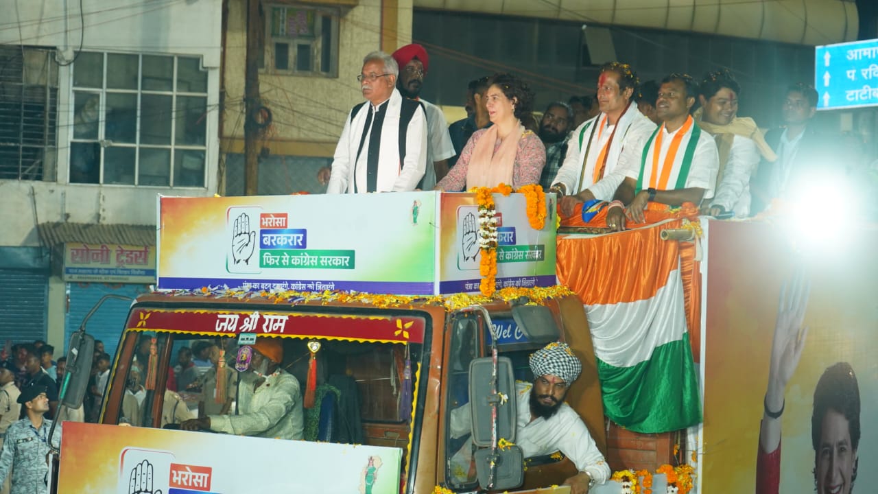 प्रियंका गांधी के रोड शो में शामिल हुए बघेल और बैज