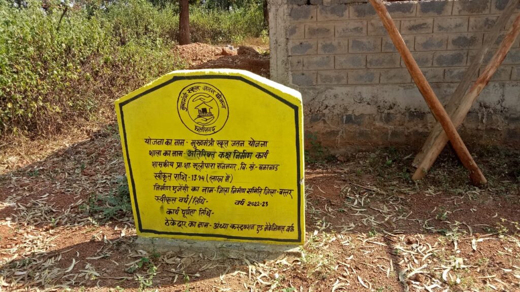 ग्राम पंचायत राजनगर -2 में मुख्यमंत्री स्कूल जतन योजना के तहत शाला भवन के अतिरिक्त कक्ष के निर्माण में जमकर अनियमितता बरती गई है। खंड शिक्षा अधिकारी कार्यालय द्वारा ठेकेदार के जरिए कराए गए अतिरिक्त कक्ष के निर्माण में भी गड़बड़ी उजागर हुई है। निर्माण कार्यों में अनियमितता की शिकायत ग्रामीण कई बार कर चुके हैं। कार्रवाई तो दूर की बात, आज तक जांच भी नहीं कराई जा सकी है। अतिरिक्त कक्ष के निर्माण में गुणवत्ता का जरा भी ध्यान नहीं रखा गया है। घटिया छड़, रॉड, सीमेंट, बजरी, गिट्टी, ईंट, रेत का इस्तेमाल किया गया है। गारे में सीमेंट कम, रेत की मात्रा ज्यादा रखी गई। दीवारों की मोटाई भी कम रखी गई है। कमरों में क्यूरिंग तक नहीं कराई गई। निर्माण स्थलों पर निर्माण से संबंधित बोर्ड नहीं लगाए गए। ताकि अनियमितता उजागर न होने पाए। अतिरिक्त कक्ष को पूरी तरह बनाए बगैर आनन फानन में फ्लोर की छबाई, दीवारों की पोताई का कार्य करा दिया गया। अतिरिक्त कक्ष की गुणवत्ता का जरा भी ध्यान नहीं रखा गया। आज तक काम पूरा नहीं किया जा सका है। जबकि स्वीकृत पूरी रकम निकली जा चुकी है। मुख्यमंत्री भूपेश बघेल द्वारा शुरू की गई इस महत्वाकांक्षी योजना से खिलवाड़ करने में पंचायत के प्रतिनिधि, अधिकारी कर्मचारी कोई कसर बाकी नहीं रख रहे हैं। इसके कारण ग्रामीणों में सरकार के प्रति गलत संदेश जा रहा है। बकावंड ब्लॉक की ग्राम पंचायत राजनगर- 2 की शासकीय प्राथमिक शाला में भी ऐसा ही खेल चला है। यहां प्राथमिक शाला के अतिरिक्त कक्ष निर्माण के लिए वित्त वर्ष 2022- 23 में 13 लाख 94 हजार रु. की स्वीकृति प्राप्त हुई थी। निर्माण की जिम्मेदारी जिला निर्माण समिति बस्तर को दी गई थी। समिति ने निर्माण का काम ठेकेदार ओंकार गागड़ा के हवाले कर दिया।