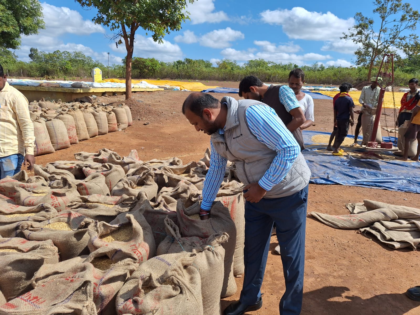 जिले में धान उपार्जन केंद्रों के माध्यम से कृषकों से समर्थन मूल्य पर धान खरीदी की स्थिति का जायजा लेने के लिए शुक्रवार को कलेक्टर विजय दयाराम के. ने बस्तर अनुभाग के सरगीपाल, राजनगर, मूली, मंगनार, सोनारपाल और देवड़ा धान उपार्जन केंद्रों का निरीक्षण किया। कलेक्टर ने कहा कि सीमावर्ती क्षेत्रों में विशेष सतर्कता के साथ नियमानुसार खरीदी करना सुनिश्चित करें। धान खरीदी में किसी भी प्रकार की लापरवाही बर्दाश्त नहीं की जाएगी। लापरवाही करने वाले लैंपस प्रबंधकों और खरीदी प्रभारी के खिलाफ तत्काल कार्रवाई की जाएगी। कलेक्टर ने बारदाना की उचित व्यवस्था नहीं करने के कारण मूली, सोनारपाल उपार्जन केंद्र के समिति प्रबंधकों को निलंबित करने के निर्देश दिए। साथ ही मूली, सोनारपाल और देवड़ा उपार्जन केंद्रों के खरीदी प्रभारी और बारदाना प्रभारी को हटाने के निर्देश दिए। उन्होंने लैंपस प्रबंधकों को नियमानुसार खरीदी करने और छोटे व सीमांत किसानों को प्राथमिकता देने के निर्देश दिए। दो दिन से हो रही बारिश की वजह से उपार्जन केंद्रों में नमी वाले स्थलों का मुरम एवं डस्ट से समतलीकरण कर खरीदी कार्य को सुचारू रूप से संचालित करने के निर्देश दिए। निरीक्षण के दौरान कलेक्टर ने खरीदी केंद्र में धान बेचने पहुंचे किसानों से उनके जमीन के आधार पर फसल उत्पादन की स्थिति का भी संज्ञान लिया। केंद्र में कलेक्टर ने धान की नमी मापक से धान की नमी की गुणवत्ता का भी आंकलन किया। उन्होंने नमी के तय मानक के अनुसार ही धान की खरीदी सुनिश्चित करने कहा। खरीदी केंद्र में बारदाने की उपलब्धता, पुराने बरदाने की स्थित और भंडारण, बायोमेट्रिक मशीन का उपयोग, किसानों की आधार लिंकिंग, किसान द्वारा किए नॉमिनेशन की स्थिति, व्यवस्थित स्टेकिंग कार्य, टोकन आधार पर खरीदी, बफर लिमिट की स्थिति का भी उन्होंने निरीक्षण किया। कलेक्टर ने खरीदी केंद्रों से डीओ कटवाकर जल्द उठाव करवाने के लिए निर्देश दिए। खरीदी केंद्र में आवश्यक व्यवस्थाओं को भी दुरुस्त करने के निर्देश अधिकारियों और नोडल को दिए।