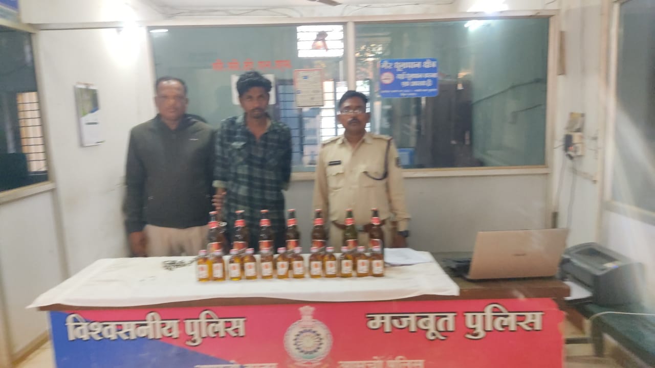 आरोपी के खिलाफ आबकारी एक्ट के तहत जुर्म दर्ज कर उसे जेल भेजा गया। आरोपी बलराम सेठिया पिता पूरन सेठिया निवासी देऊरगांव है।वह धरमपुरा क्षेत्र में अपनी मोटर सायकल में अवैध शराब रखकर विक्री हेतु परिवहन कर रहा था। थाना प्रभारी लीलाधर राठौर ने बताया कि पुलिस टीम ने धरमपुरा 3 में बिजली ऑफिस के सामने आरोपी को पकड़ा। उसके पास रखे बैग से कंगारू टेन थाउजेंड बियर की 7 बोतलें और 11 पौव्वा प्रीमियम व्हिस्की बरामद की गई। शराब की कीमत 2,790 रू आंकी गई है। आरोपी की मोटर सायकल सीजी 17 केवी 5899 को भी जप्त कर लिया गया है।