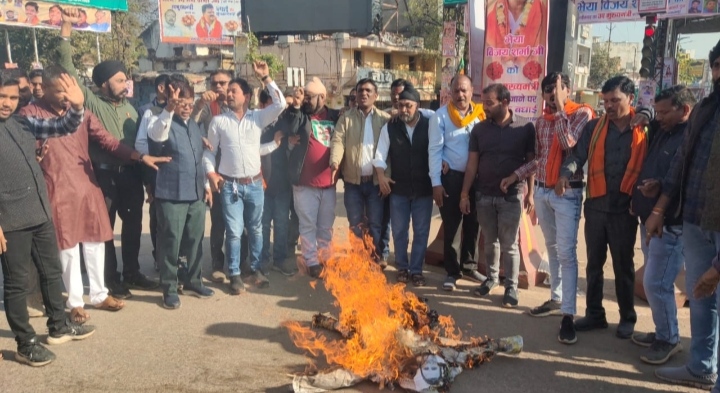 कवर्धा :- दो दिवस पूर्व लोकसभा एवं राज्यसभा में असंसदीय व्यवहार करने पर विपक्ष के सांसदों को निलंबित किया गया था । निलंबन के दौरान लोकसभा भवन परिसर में प्रोटेस्ट कर रहे विपक्षी सांसदों में मौजूद टीएमसी के सांसद कल्याण बैनर्जी ने अशोभनीय व्यवहार प्रदर्शित करते हुए उप राष्ट्रपति एवं सभापति जगदीप धनकड़ का मिमिक्री कर उनका मजाक बना रहे थे । इस दरम्यान काँग्रेस के राष्ट्रीय अध्यक्ष रह चुके राहुल गाँधी भी उनका वीडियो बनाते हुए इस अशोभनीय व्यवहार का लुफ्त उठा रहे थे । न्यूज चैनलों में फुटेज जारी होने के बाद देश भर में विपक्षी सांसदों की निंदा हो रही है । इसी तारतम्य में भारतीय जनता पार्टी किसान मोर्चा के नेतृत्व में कवर्धा स्थानीय सिग्नल चौक में राहुल गाँधी का पुतला दहन किया गया ।