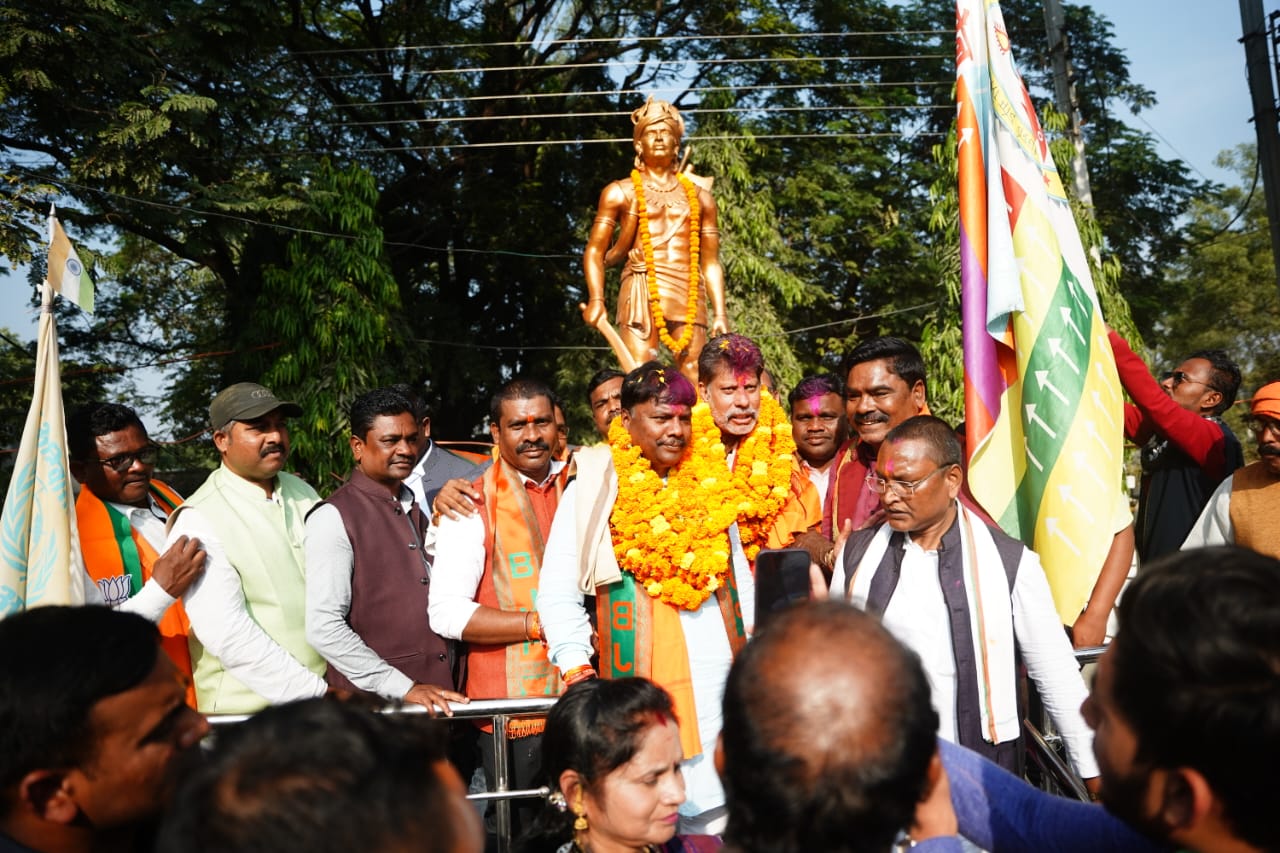 प्रदेश भाजपा अध्यक्ष नियुक्त होने के बाद जगदलपुर के विधायक किरण देव सिंह और मंत्री बनने के बाद नारायणपुर के विधायक केदार कश्यप के प्रथम नगर आगमन पर उनके स्वागत के लिए आतुर भाजपा, भाजयुमो, महिला मोर्चा व विभिन्न अनुषांगिक संगठनों के नेताओं व कार्यकर्ताओं तथा आम नागरिकों की भारी भीड़ उमड़ पड़ी। बस्तर संभाग की सीमा में प्रवेश करते ही दोनों नेताओं का चारामा, कांकेर, केशकाल, कोंडागांव, भानपुरी से लेकर जगदलपुर तक जगह – जगह अभूतपूर्व स्वागत हुआ। दोनों नेताओं का काफिला देर रात जगदल पहुंचा। रात गहरा चुकी थी, आसमान से टपकती ओस की बूदें और सर्द हवाएं शरीर में ठिठुरन पैदा कर रहीं थीं, फिर भी लोगों का जोश उबाल मार रहा था। अपने नेताओं के स्वागत के लिए बेताब लोगों को ठंड की जरा भी परवाह नहीं थी। सैकड़ों महिलाएं अपने छोटे छोटे बच्चों के साथ पहुंची थीं। किरण देव और केदार कश्यप का शहर कई जगह भव्य स्वागत हुआ। महिलाओं ने मार्ग पर दर्जनों जगह आकर्षक रंगोली सजा रखी थी। आतिशबाजी की रंगीन रौशनी से पूरा शहर बार बार नहा उठता था। भाजपा नगर मंडल के अध्यक्ष सुरेश गुप्ता के नेतृत्व में नगर के भाजपा पदाधिकारियों और कार्यकर्ताओं ने तथा भाजपा के प्रदेश प्रवक्ता एवं नगर निगम जगदलपुर के नेता प्रतिपक्ष संजय पाण्डेय के नेतृत्व में पार्षदों और नागरिकों ने तथा महिला मोर्चा जिला अध्यक्ष एवं मंडल अध्यक्ष के नेतृत्व में महिलाओं ने श्री देव और श्री कश्यप का ऐतिहासिक स्वागत किया। महिला पार्षदों द्वारा सजाई गई रंगोली की छटा देखते ही बनती थी। किरण देव और केदार कश्यप को बस्तर के पारंपरिक परिधान का हिस्सा माड़िया सींग और गजमाला पहनाकर तथा स्मृति चिन्ह भेंटकर अभिनंदन किया गया।