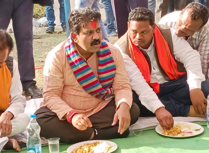 उपमुख्यमंत्री विजय शर्मा ग्राम बोक्करखार में ग्रामीणों के साथ बैठकर भोजन किया