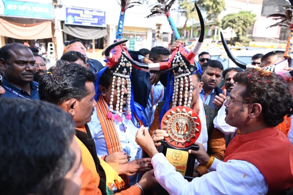 जगदलपुर। मुख्यमंत्री विष्णुदेव साय के प्रथम बस्तर आगमन पर बस्तरवासियों ने जगदलपुर शहर के विभिन्न चौक-चौराहों पर पारंपरिक आदिवासी लोकनृत्यों, पुष्प वर्षा, लोकगीतों, और शंखनाद से जोशीला स्वागत किया।
