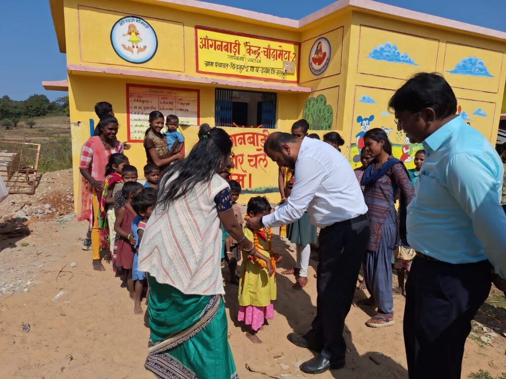बच्चों से कराया आंगनबाड़ी का उद्घाटन