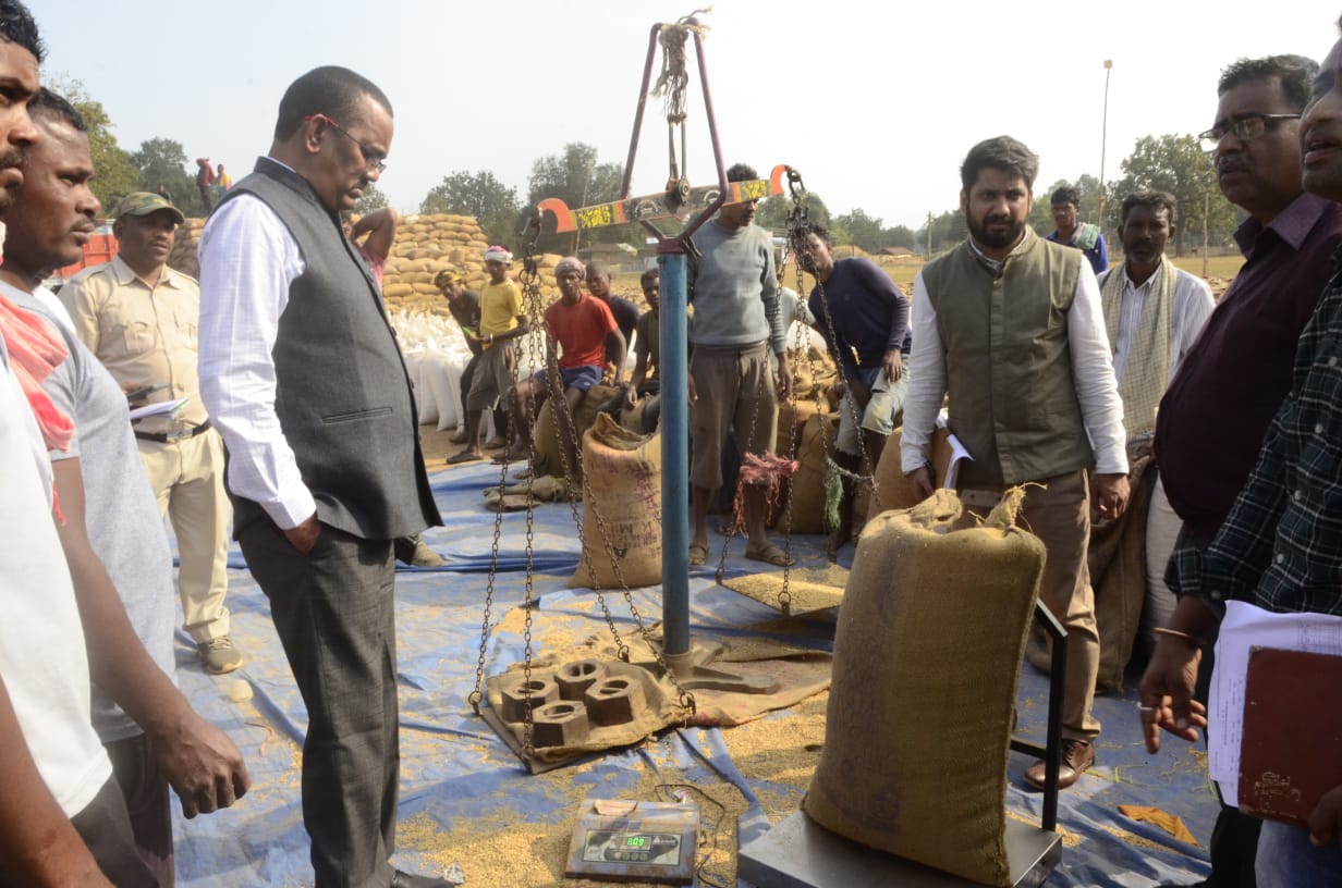 जगदलपुर। बस्तर संभाग के कमिश्नर श्याम धावड़े ने शुक्रवार को कोंडागांव जिले के सिंघनपुर धान खरीदी केंद्र का औचक निरीक्षण किया। उन्होंने धान खरीदी केंद्र के प्रभारी से पंजीकृत किसानों की संख्या, किसानों का रकबा, धान उठाव की स्थिति की जानकारी लेकर खरीदे गए धान का वजन करवाया। कमिश्नर ने धान की बोरी का वजन कम पाने पर बाट वाले तौल की जगह इलेक्ट्रानिक तौल मशीन का उपयोग करने के निर्देश दिए। इसके अलावा उन्होंने नमी मापक यंत्र से धान की नमी की भी जांच करवाई। इसके अलावा मक्का खरीदी की व्यवस्था पर भी चर्चा किए।