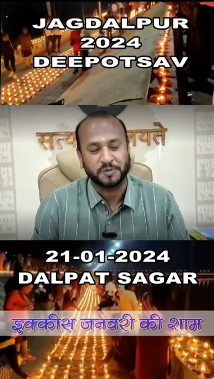 दीपोत्सव के आयोजन को लेकर बस्तर के कलेक्टर विजय दयाराम के. ने मंगलवार 16 जनवरी को एक वीडियो संदेश जारी कर जगदलपुर शहर एवं बस्तर जिले के नागरिकों से दीपोत्सव में सहभागिता की अपील की है। विजय दयाराम के. ने इस वीडियो संदेश में कहा है कि 22 जनवरी को अयोध्या के मंदिर में रामलला विराजमान हो रहे हैं। इसकी पूर्व संध्या जगदलपुर के दलपत सागर जलाशय में भव्य दीपोत्सव का कार्यक्रम आयोजित है। यह कार्यक्रम जनसहयोग से होगा। अतः नागरिक ज्यादा से ज्यादा दीपक, तेल और बातियां निर्धारित स्थानों में जमा कराएं और इस स्वर्णिम अवसर पर उपस्थिति दर्ज कराएं। कलेक्टर ने दीपोत्सव के दौरान आयोजन स्थल पर कचरा न फैलाने तथा आयोजन के दूसरे दिन दलपत सागर के तटों की सफाई में योगदान देने की भी अपील नागरिकों से की है।