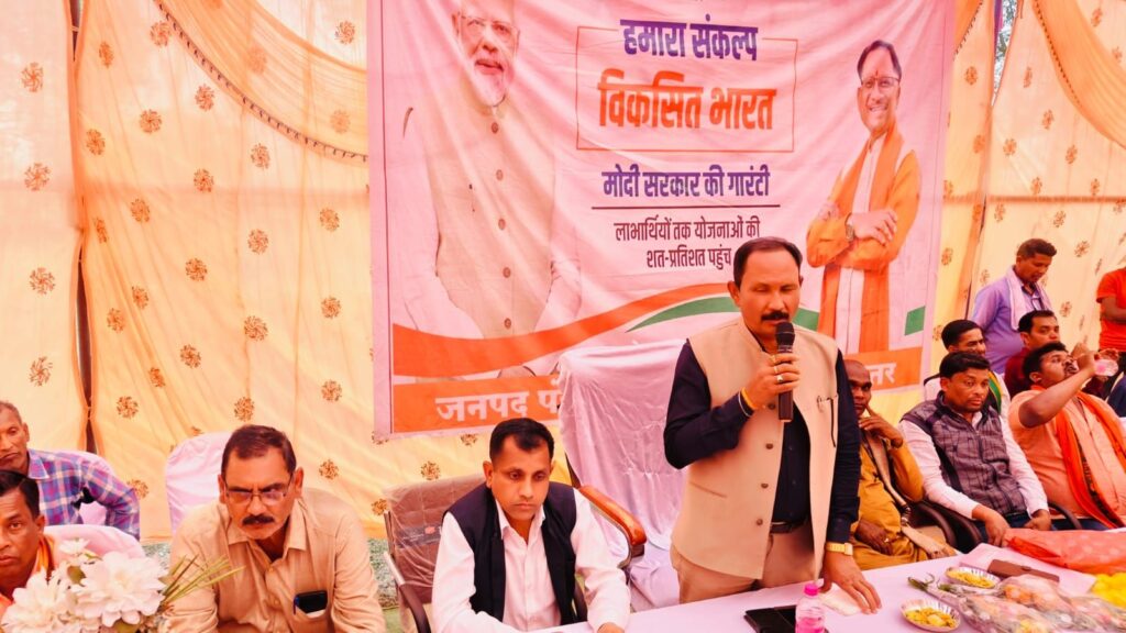 बस्तर जिले के बकावंड ब्लाक अंतर्गत ग्राम पंचायत राजनगर, भेजरीपदर, कोसमी, तुंगापाल, कोरटा, पीठापुर, नलपावंड में आयोजित शिविरों में जिला पंचायत उपाध्यक्ष मनीराम कश्यप, भाजपा प्रदेश कार्यकारिणी सदस्य बनवासी मौर्य व जनप्रतिनिधियों व विभागीय अधिकारियों ने विभिन्न ग्रामों में पंहुचकर मोदी की गारंटी से ग्रामीणों को लाभान्वित किया। कोसमी, भेजरीपदर, कोरटा, पीठापुर, नलपावंड, सौतपुर, तारापुर आदि ग्रामो में केंद्र की योजनाओं के बारे में विभागीय अधिकारियों व जनप्रतिनिधियों ने जानकारी दी। मुख्य अतिथि के रूप में भाजपा प्रदेश कार्यकारिणी सदस्य बनवासी मौर्य व विकसित भारत संकल्प यात्रा की गाड़ी के साथ लगातार 16 दिसंबर 2023 से बनबासी मौर्य विभिन्न ग्रामों में जा रहे हैं। वे ग्रामीणों से समस्याओं की जानकारी लेकर विभागीय अधिकारियों से तत्काल निराकरण करने कह रहे हैं। ग्रामीणों ने बाजे गाजे के साथ जगह जगह उनका भव्य स्वागत किया। सभा को संबोधित करते हुए बनवासी मौर्य ने कहा कि दो सौ से ज्यादा योजनाएं केंद्र सरकार ने जनहित में चला रखी है।इन योजनाओं को जानना समझना है और लाभ लेना है। जब छत्तीसगढ़ में कांग्रेस सरकार थी, तब सिर्फ घोटाले हुआ करते थे। आप लोगों को केंद्र की योजनाओं से वंचित दिया गया था। अब आप लोगों घबराने की जरूरत नहीं है। विष्णु देव साय की सरकार में सब ठीक हो रहा है। कोसमी में उपस्थित भाजपा प्रदेश कार्यकारिणी सदस्य डॉ. सुभाउ कश्यप ने कहा कि समाज के लिए कोई काम हो सकता है, आप स्वयं जानते हैं आप लोगों को बताने की जरूरत नहीं है वह ऐसा करना चाहिए ऐसा मेरा आग्रह है क्योंकि मानव जीवन हर बार नहीं मिलता। अपने लिए तो सब जीते हैं। ईश्वर ने हमें मनुष्य रूप दिया है एक वृक्ष भी कितने लोगों को छाया देता है। हमारा गांव पिछड़ा हुआ है।इस पिछड़ेपन को कैसे दूर करें, इसके लिए केवल बोलने से नहीं होगा सभी को मैदान पर उतर करकर काम भी करना होगा। अपना जीवन को धन्य बनाएं। आप लोगों को एक सुनहरा अवसर मिला है। देश और समाज के लिए भी कुछ ऐसा कार्य करना होगा जो मिसाल बन जाए। भेजरीपदर में उपस्थित जिला भाजपा कार्यकारिणी सदस्य नारायण बिसाई ने लोगों योजनाओं की जानकारी दी। मंडल अध्यक्ष धनुर्जय कश्यप ने भी विचार रखे। भाजपा प्रदेश कार्यकारिणी सदस्य बनवासी मौर्य, किसान मोर्चा प्रदेश कार्यकारिणी सदस्य जोगेंद्र चंद्राकर, जिला कार्यकारिणी सदस्य नारायण बिसाई, जिला महामंत्री वेदप्रकाश पांडे, मंडल महामंत्री दामोधर बघेल, मंडल अध्यक्ष धनुर्जय कश्यप, मनोज बिसाई, अनिल बिसाई, सुनील सेठिया, महामंत्री पुरषोत्तम जोशी, पूर्व मंडल अध्यक्ष रोहित त्रिवेदी, अजजा मोर्चा महामंत्री खगेश्वर कर्मा, परमानंद पाढ़ी, सरपंच कलावती बघेल, उप 