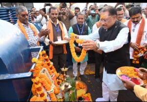 कवर्धा :- मुख्यमंत्री विष्णु देव साय ने आज शुक्रवार को कबीरधाम जिले के ग्राम कुसुमघटा में आधुनिक एवं तकनीकी विधि से संचालित माँ रूखमणी गुड़ उद्योग का विधिवत शुभारंभ किया। मुख्यमंत्री के साथ इस अवसर पर उपमुख्यमंत्री विजय शर्मा, कृषि मंत्री रामविचार नेताम, वन मंत्री केदार कश्यप, स्वास्थ्य मंत्री श्याम बिहारी जायसवाल, सांसद श्री संतोष पाण्डेय एवं पंडरिया विधायक श्रीमती भावना बोहरा भी उपस्थित रहे।